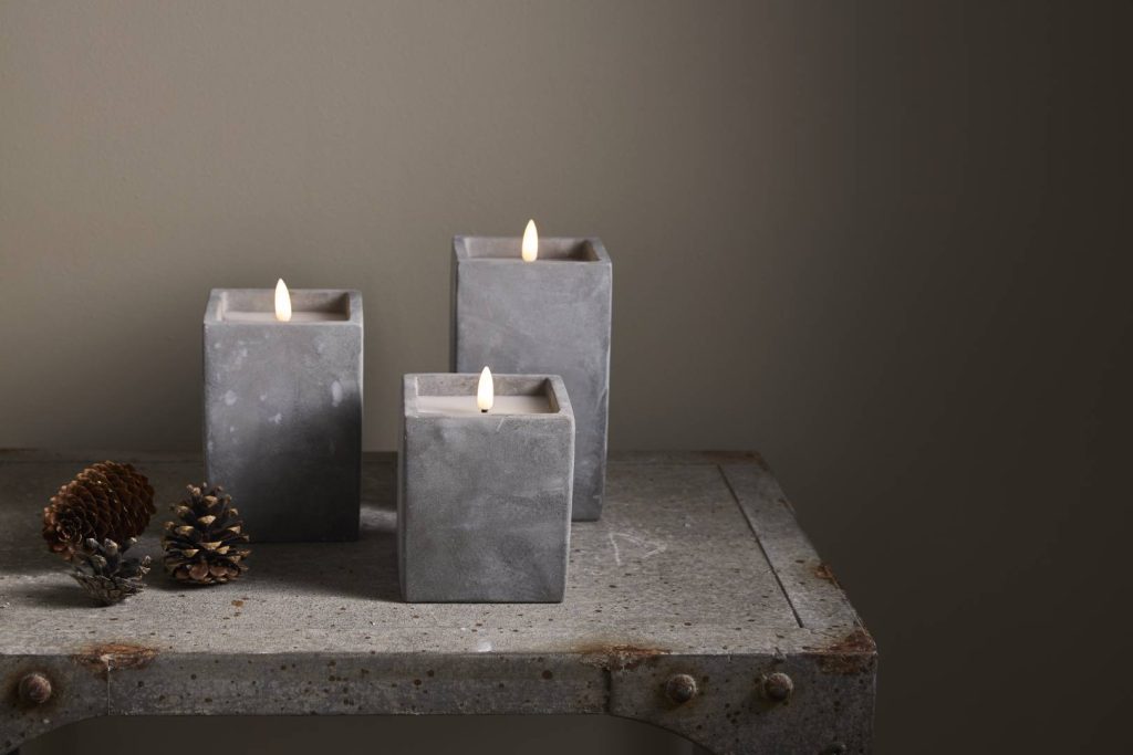 Flamme Cem LED-kynttilä, sementistä ja vahasta
