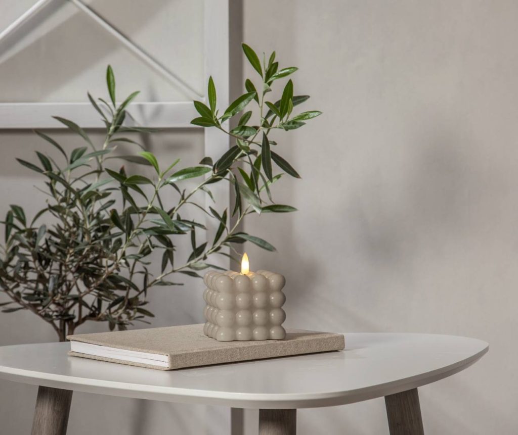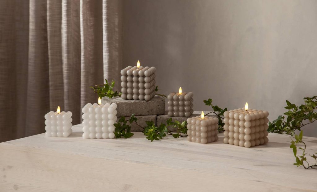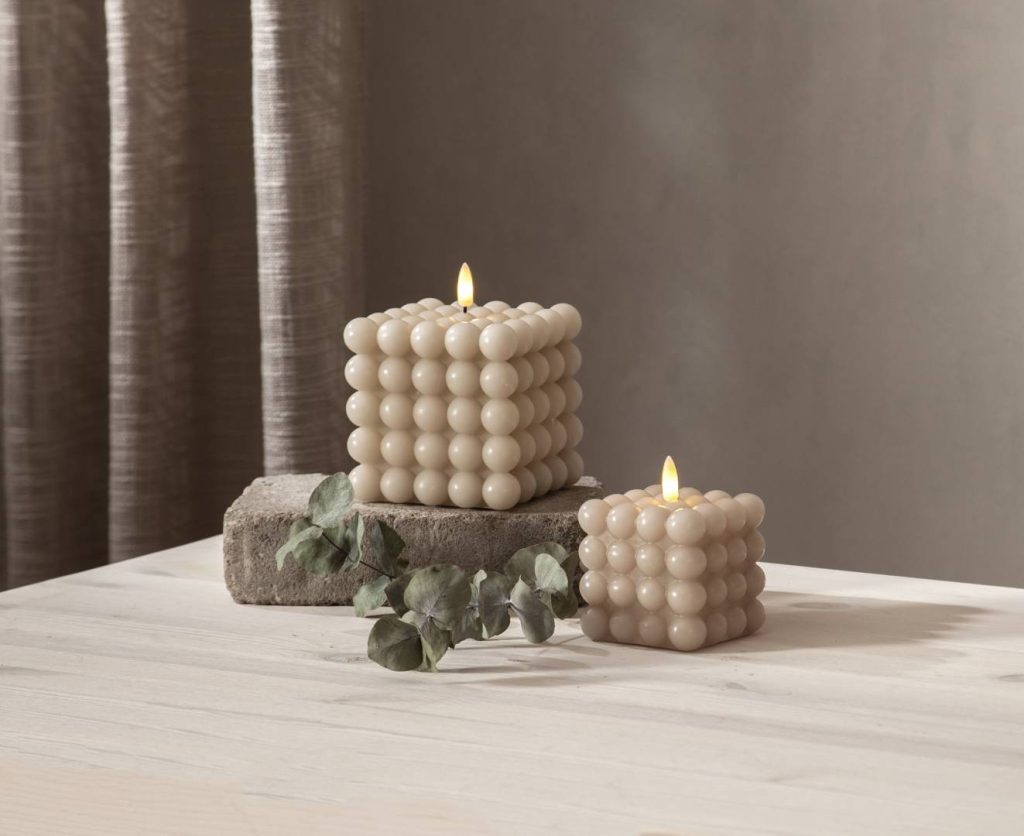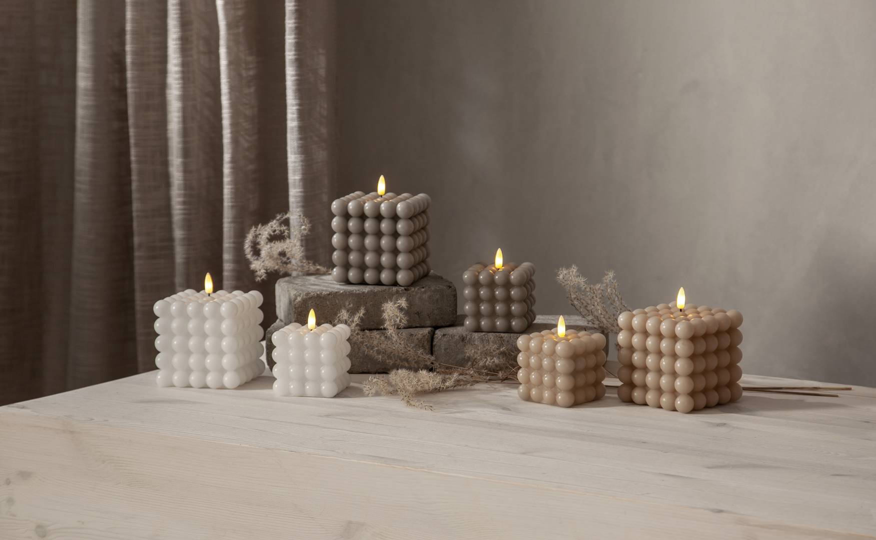 Flamme Dot on vahasta valmistettu neliskanttinen kuplakynttilä, jossa on aitoa muistuttava lämpimän valkoinen LED-liekki. Tämä paristokäyttöinen kynttilä on kaunis koriste niin yksinään kuin ryhmässä.