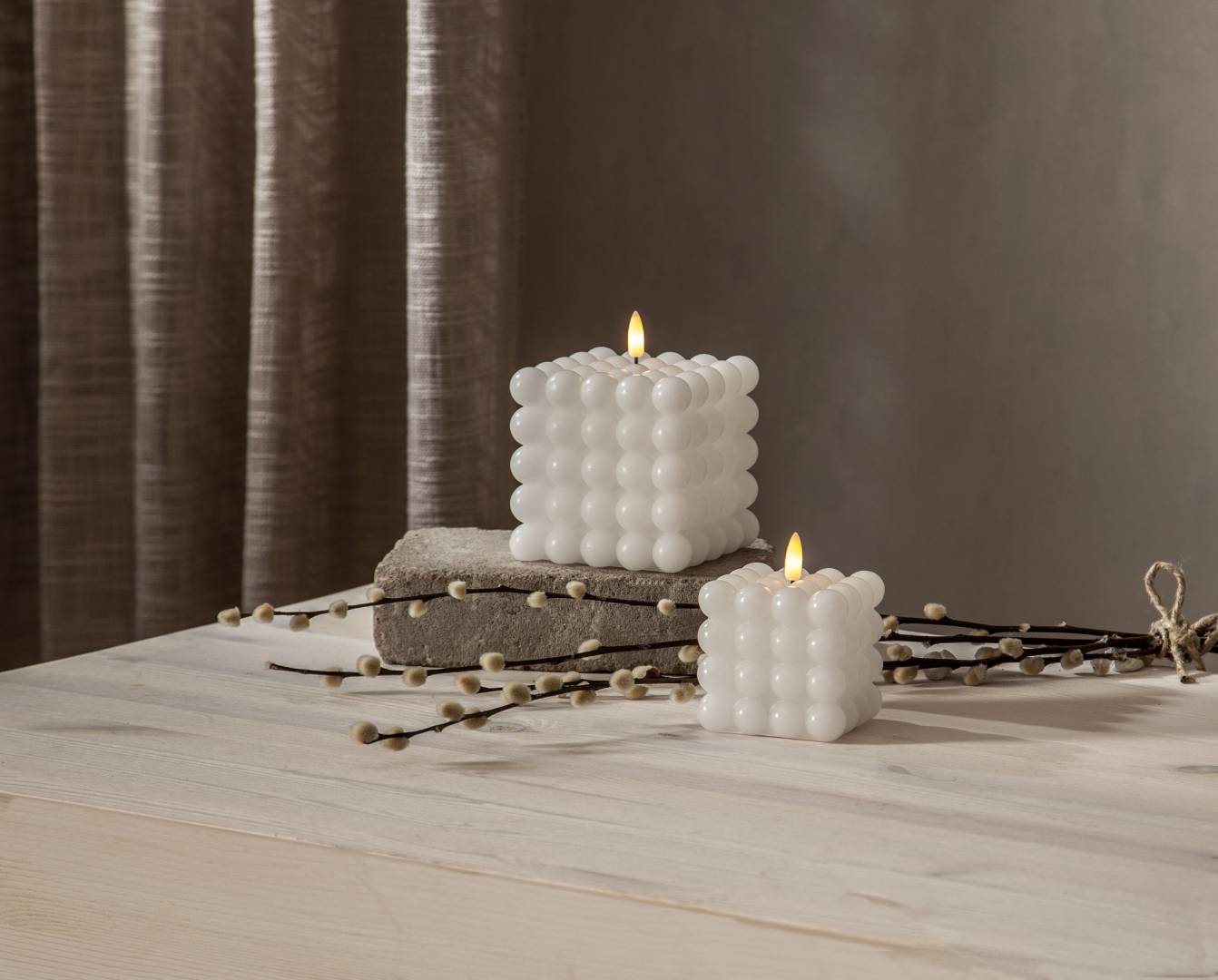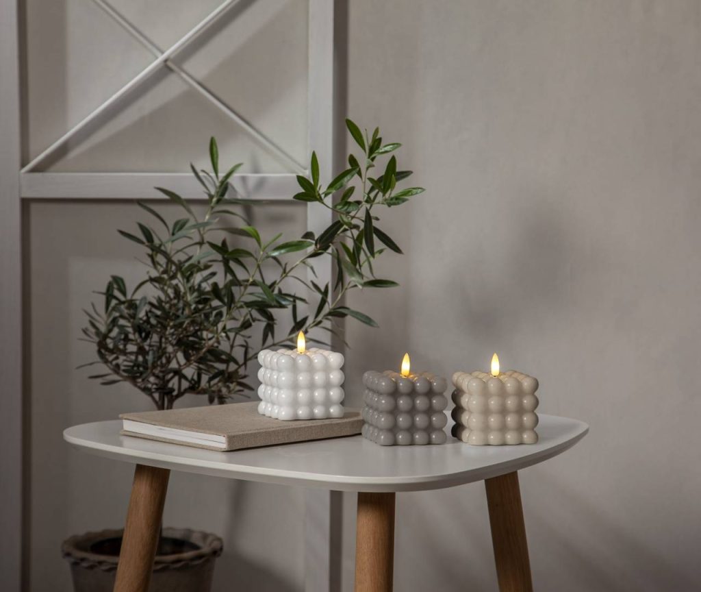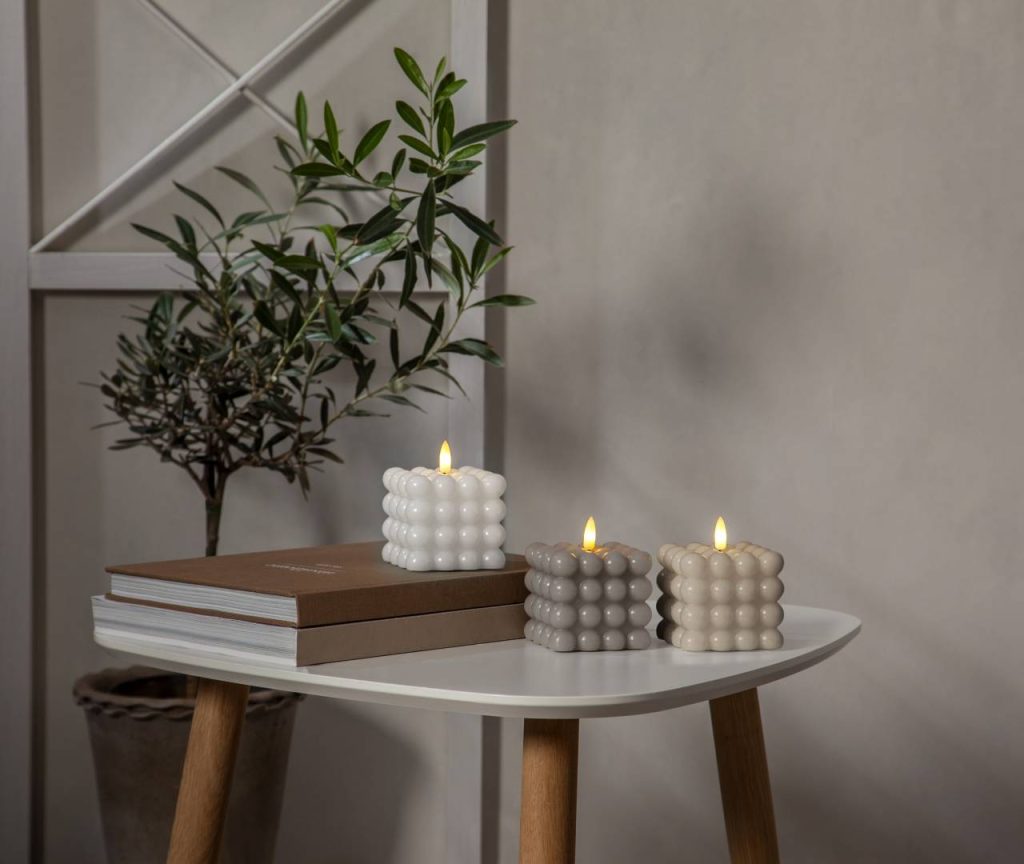 Flamme Dot on vahasta valmistettu neliskanttinen kuplakynttilä, jossa on aitoa muistuttava lämpimän valkoinen LED-liekki. Tämä paristokäyttöinen kynttilä on kaunis koriste niin yksinään kuin ryhmässä.
