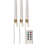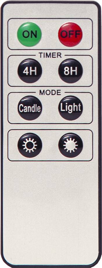 Pakkaus sisältää kauko-ohjaimen, jolla voit sytyttää ja sammuttaa kynttilät, ajastaa ne palamaan joko neljä tai kahdeksan tuntia, himmentää valoja ja valita joko tasaisen tai liekehtivän valon.