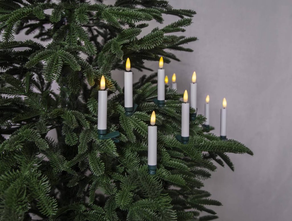 Johdottomat kuusenkynttilät sisäkäyttöön. Paristokäyttöinen Flamme kuusenkynttiläsarja sisältää 10 kynttilää, joissa on aidon näköinen liekki lämpimän valkoisella valolla.