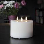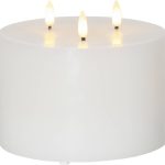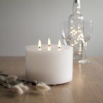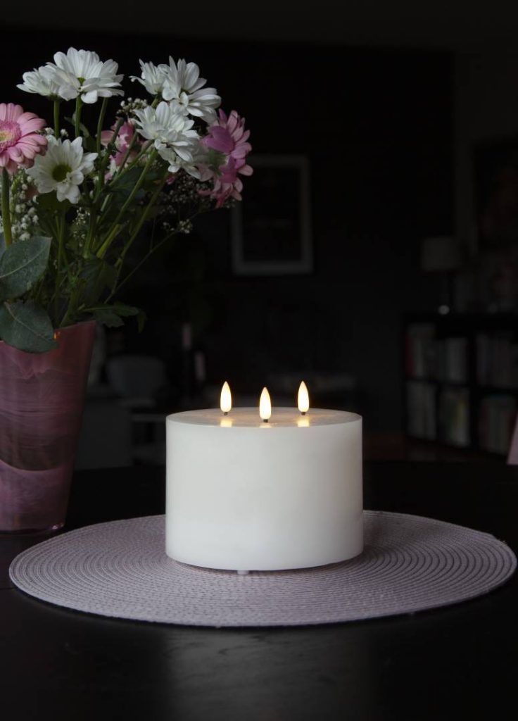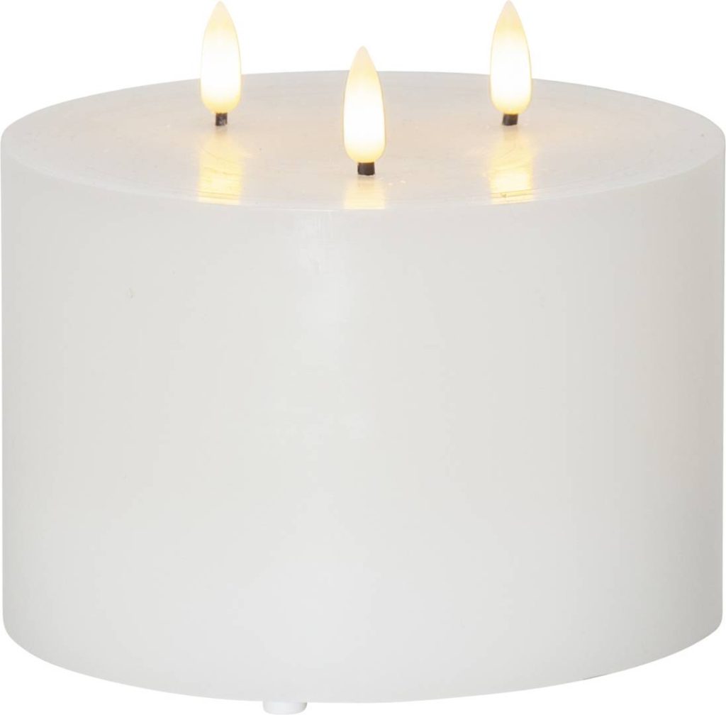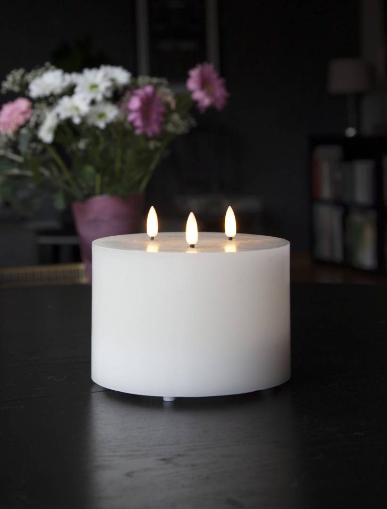 Vahasta valmistettu pöytäkynttilä kolmella aidonnäköisellä LED-liekillä, joissa on tunnelmallinen, lämpimän valkoinen valo.