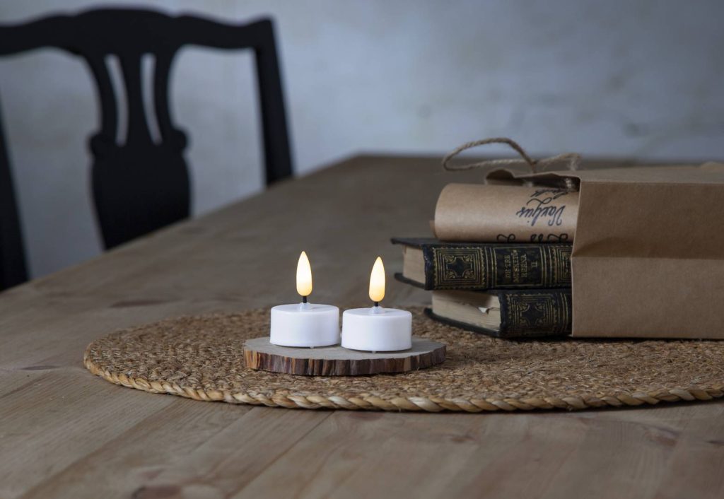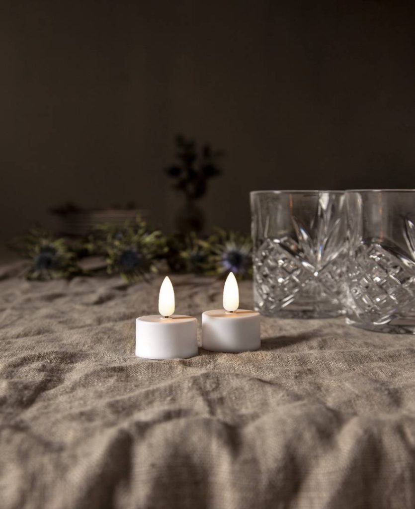 Flamme-tuikkukynttilässä on aitoa muistuttava lämpimän valkoinen LED-liekki. Pakkaus sisältää kaksi sisäkäyttöön tarkoitettua kynttilää.
