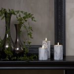 LED-kynttilä marmorikuvioitua betonia. Aidon näköinen Flamme-liekki.