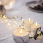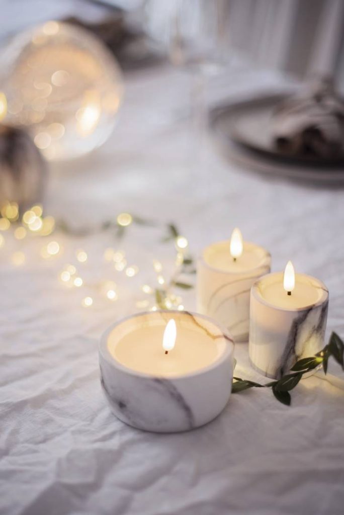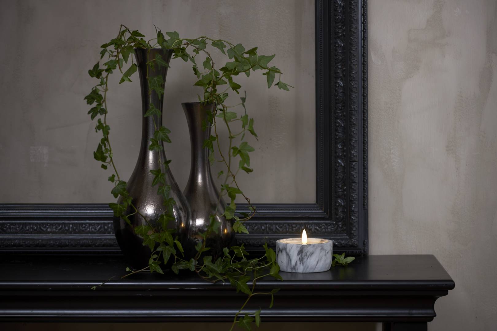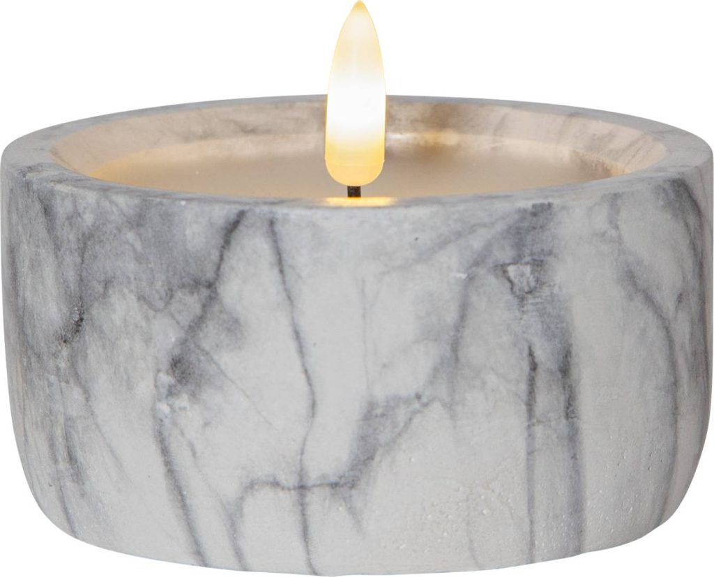 LED-kynttilä marmorikuvioitua betonia. Aidon näköinen Flamme-liekki.