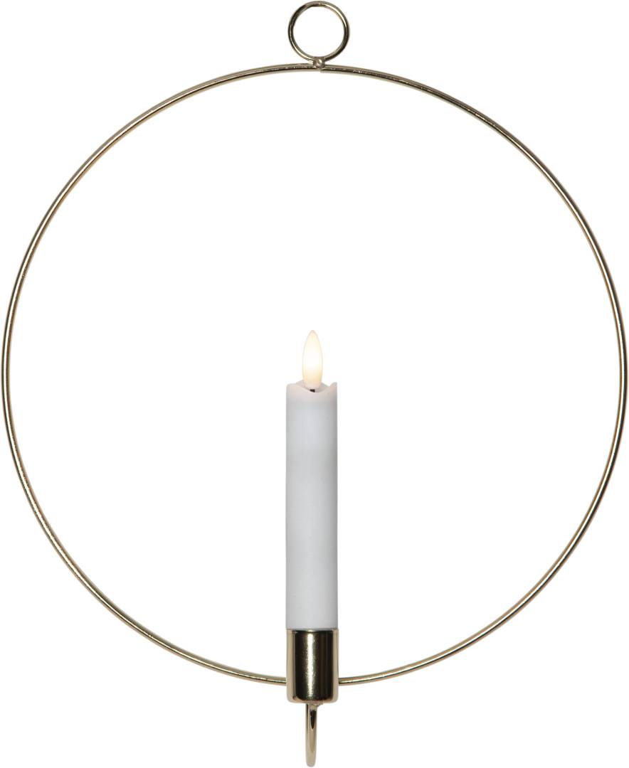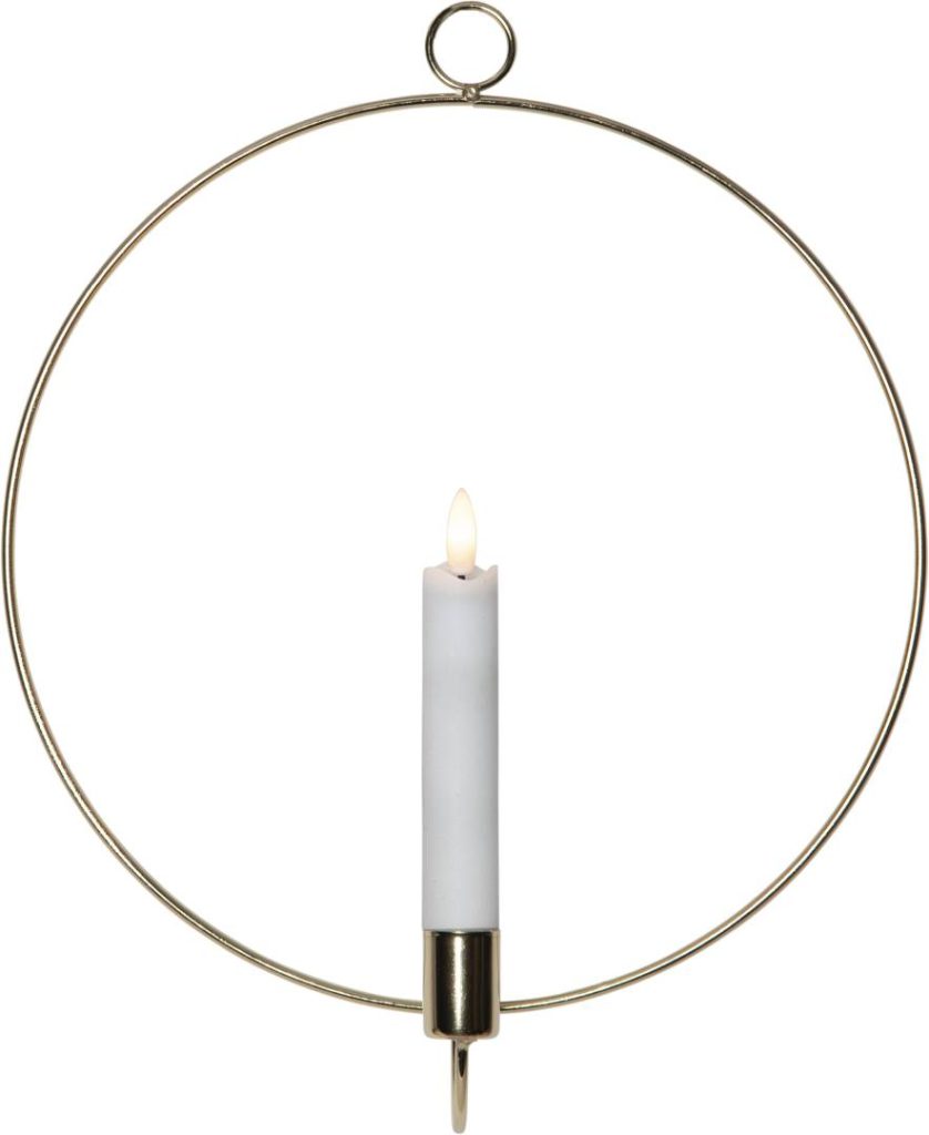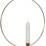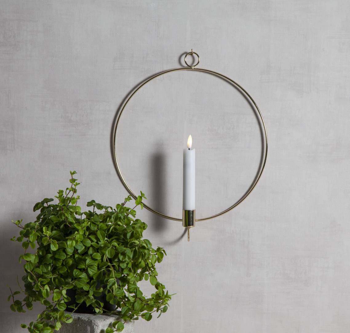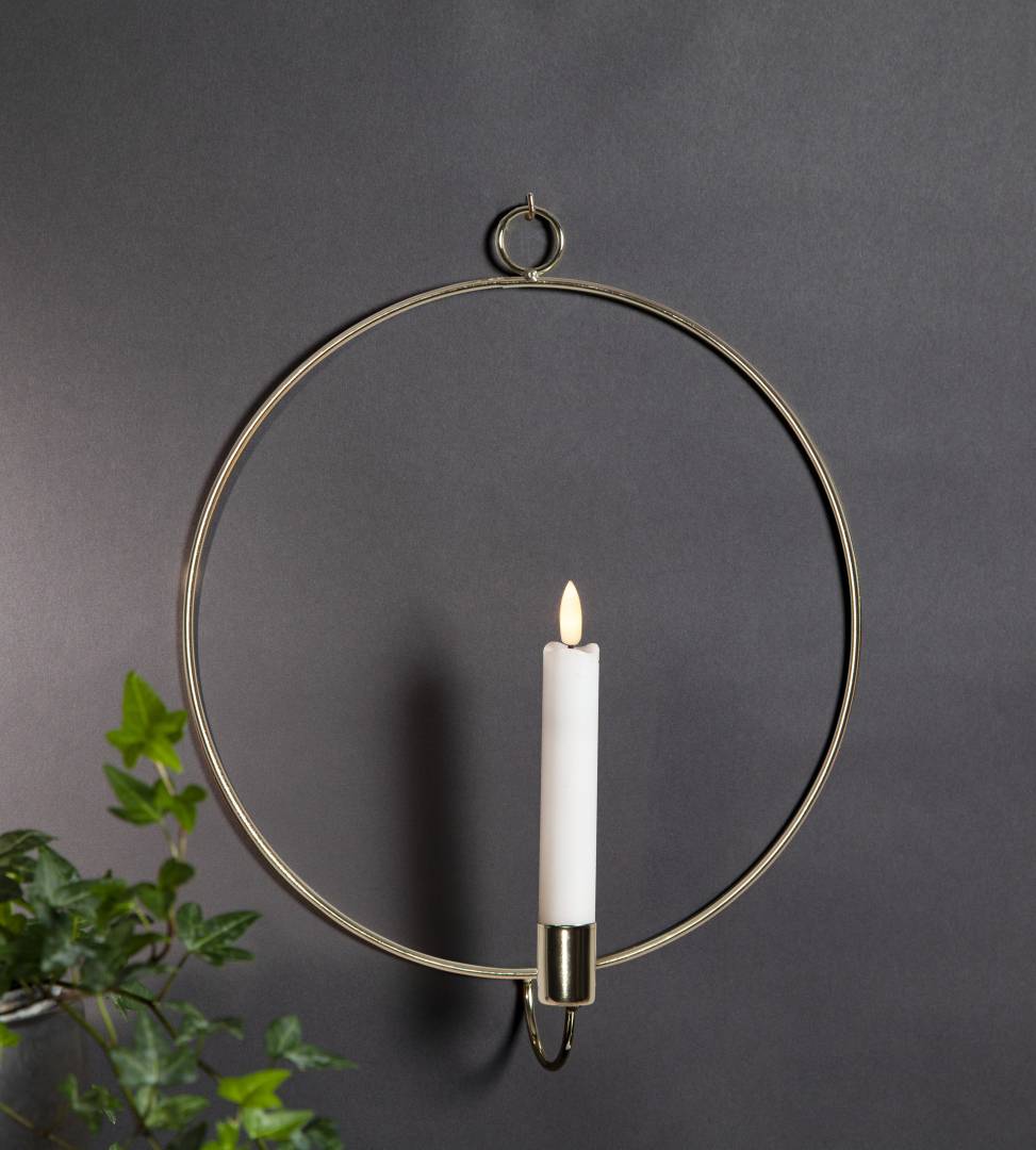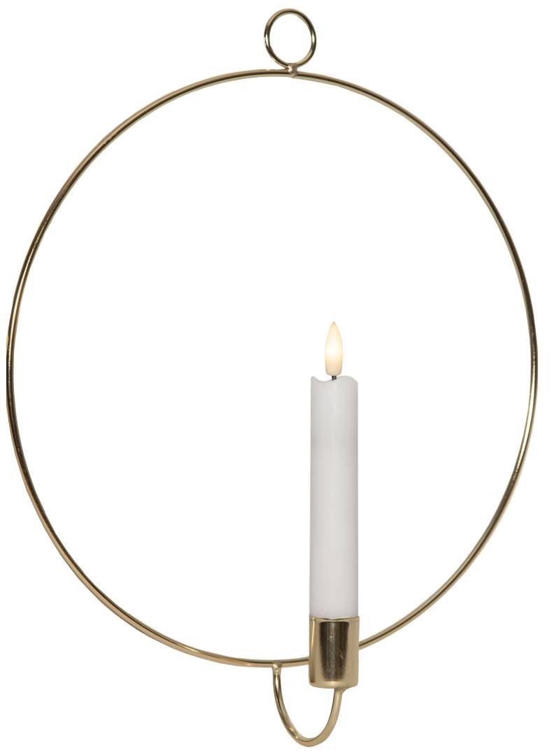 Messingin värinen seinälampetti, jossa 15 cm korkea Flamme-antiikkikynttilä aidonnäköisellä lämpimän valkoisella liekillä. Kaunis koriste, joka luo tunnelmallista valoa kotiisi.
