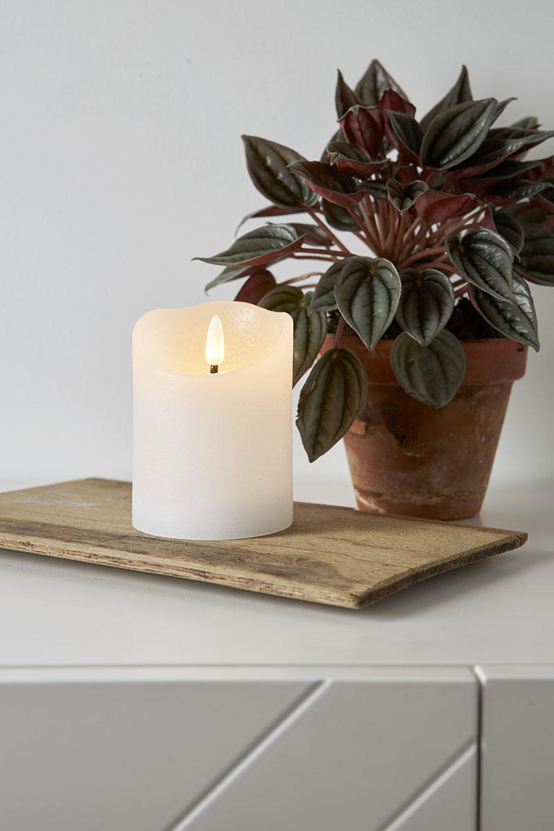 Vahasta valmistettu LED-kynttilä aidon näköisellä lämpimän valkoisella Flamme-liekillä.