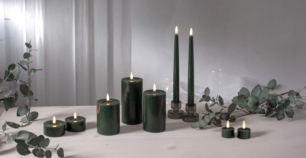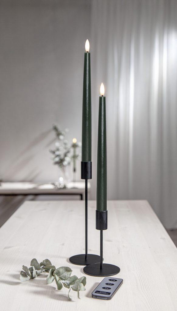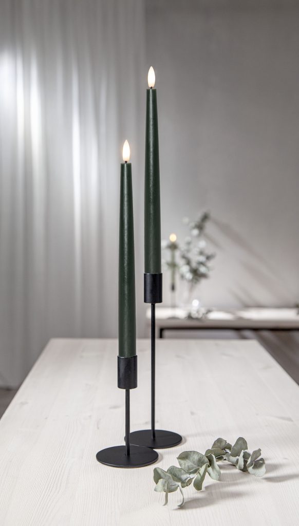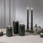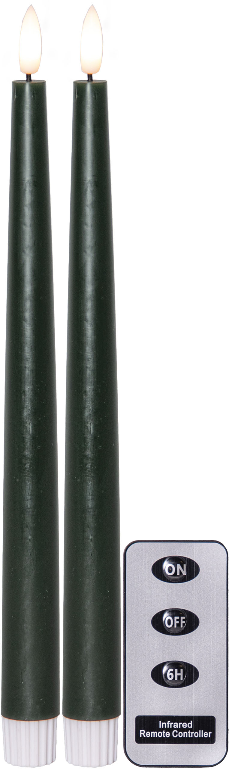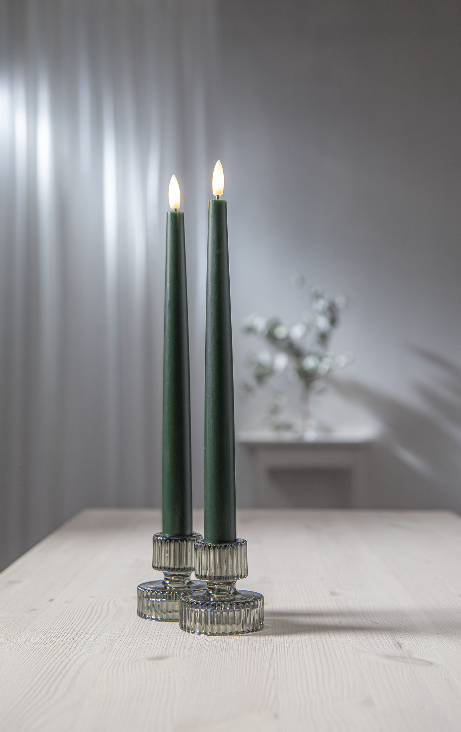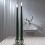 Flamme Slim LED-antiikkikynttilä 28cm vihreä 2p