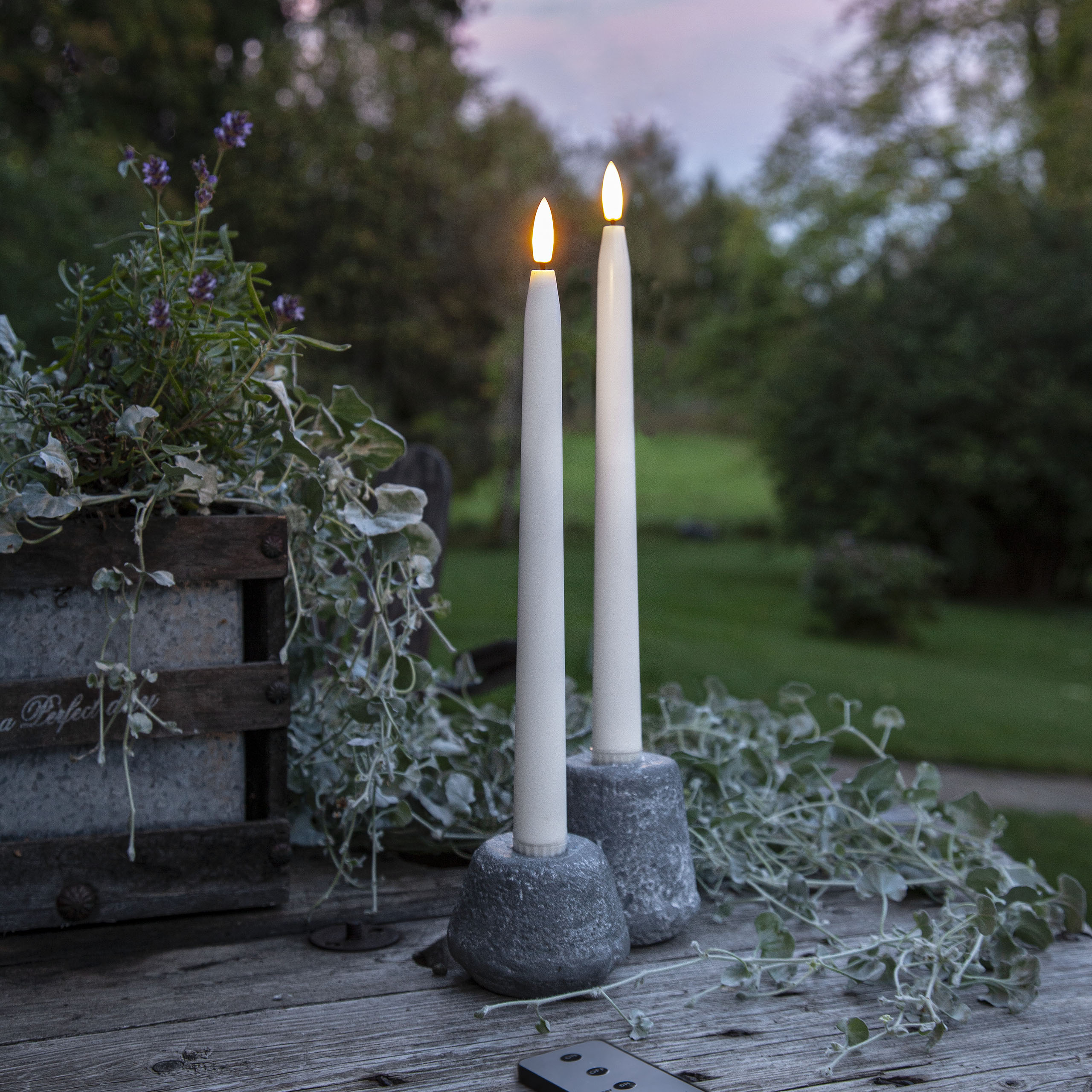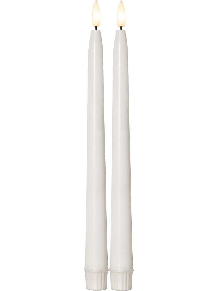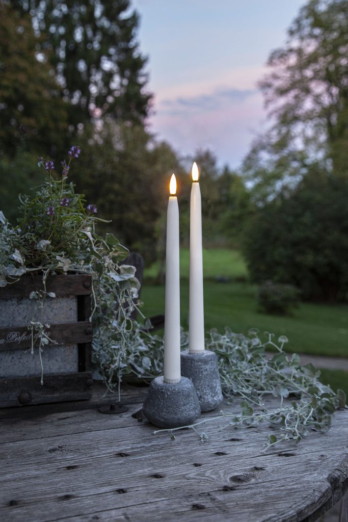 Ulko- ja sisäkäyttöön sopivat sileäpintaiset antiikkikynttilät kahden kappaleen pakkauksessa. Kynttilöissä on aidon näköinen LED-liekki lämpimän valkoisella valolla.