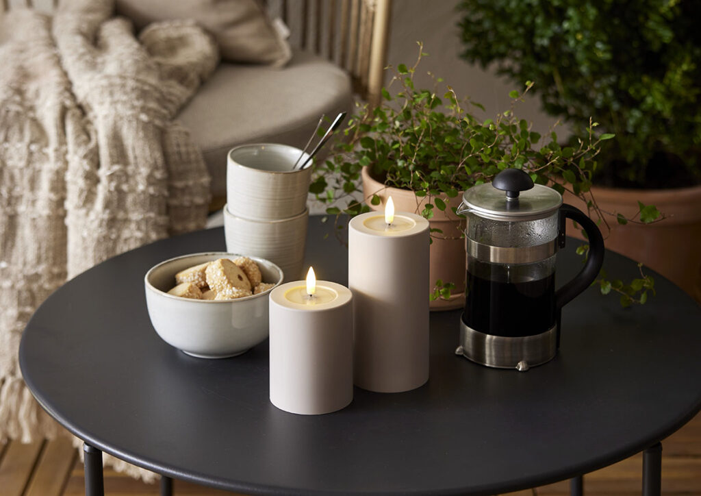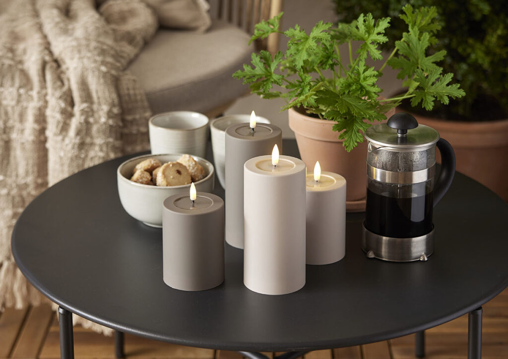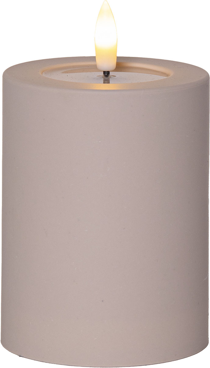 Flamme Soft -kynttilän aitoa muistuttava lämpimän valkoinen LED-liekki ja kiiltävä, sulalta steariinilta näyttävä syvennys liekin alapuolella saavat sen näyttämään oikealta palavalta kynttilältä.