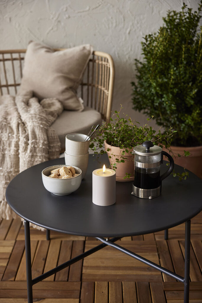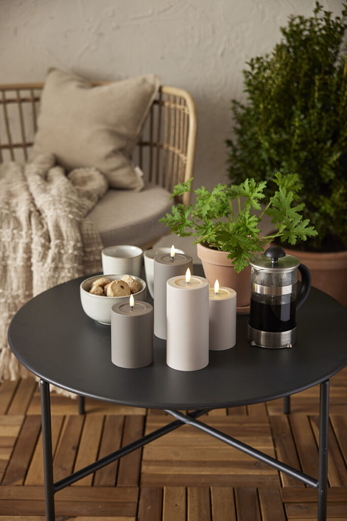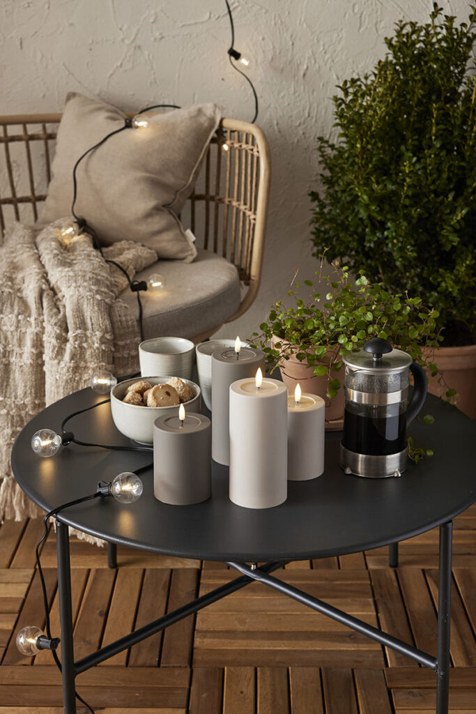 Muovista valmistetun kynttilän pinta tuntuu silkinsileältä. Kynttilä sopii sekä ulko- että sisäkäyttöön.