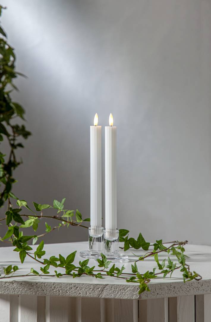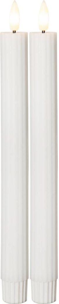 Flamme Stripe on vahasta valmistettu LED-antiikkikynttilä uritetulla pinnalla ja aidon näköisellä lämpimän valkoisella Flamme-liekillä. Pakkaus sisältää kaksi kynttilää.