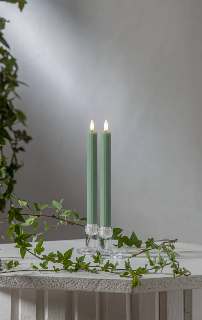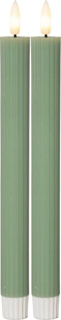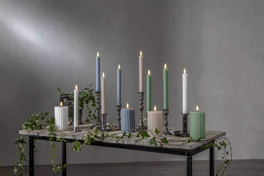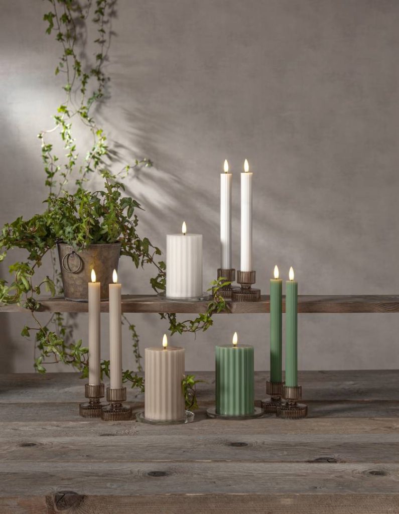 Flamme Stripe on vahasta valmistettu LED-antiikkikynttilä uritetulla pinnalla ja aidon näköisellä lämpimän valkoisella Flamme-liekillä. Pakkaus sisältää kaksi kynttilää.