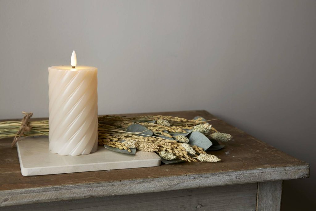 Flamme Swirl on vahasta valmistettu LED-kierrekynttilä aidon näköisellä lämpimän valkoisella Flamme-liekillä.