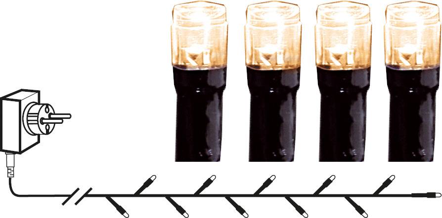 21 m pitkä valosarja ulkokäyttöön. Valon sävy: ekstralämmin valkoinen.
