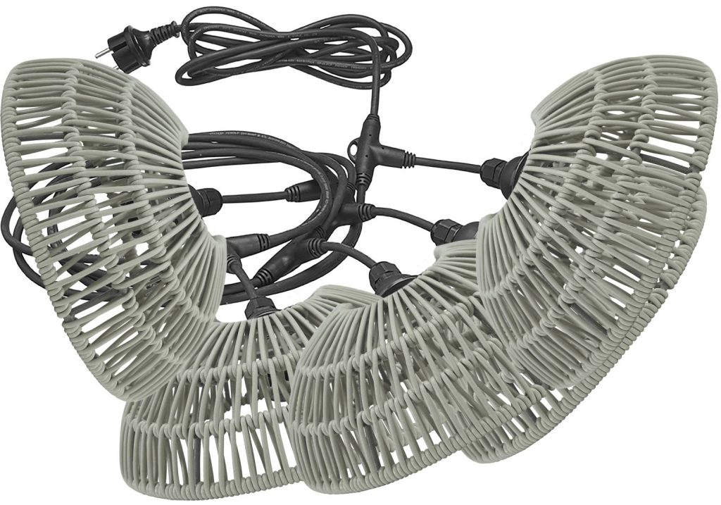 6,5 metriä pitkä valosarja ulkokäyttöön. Valosarjassa on 80 cm välein viisi lampunpidikettä ja E27-kiinnitysrenkaat varjostimia varten.