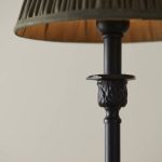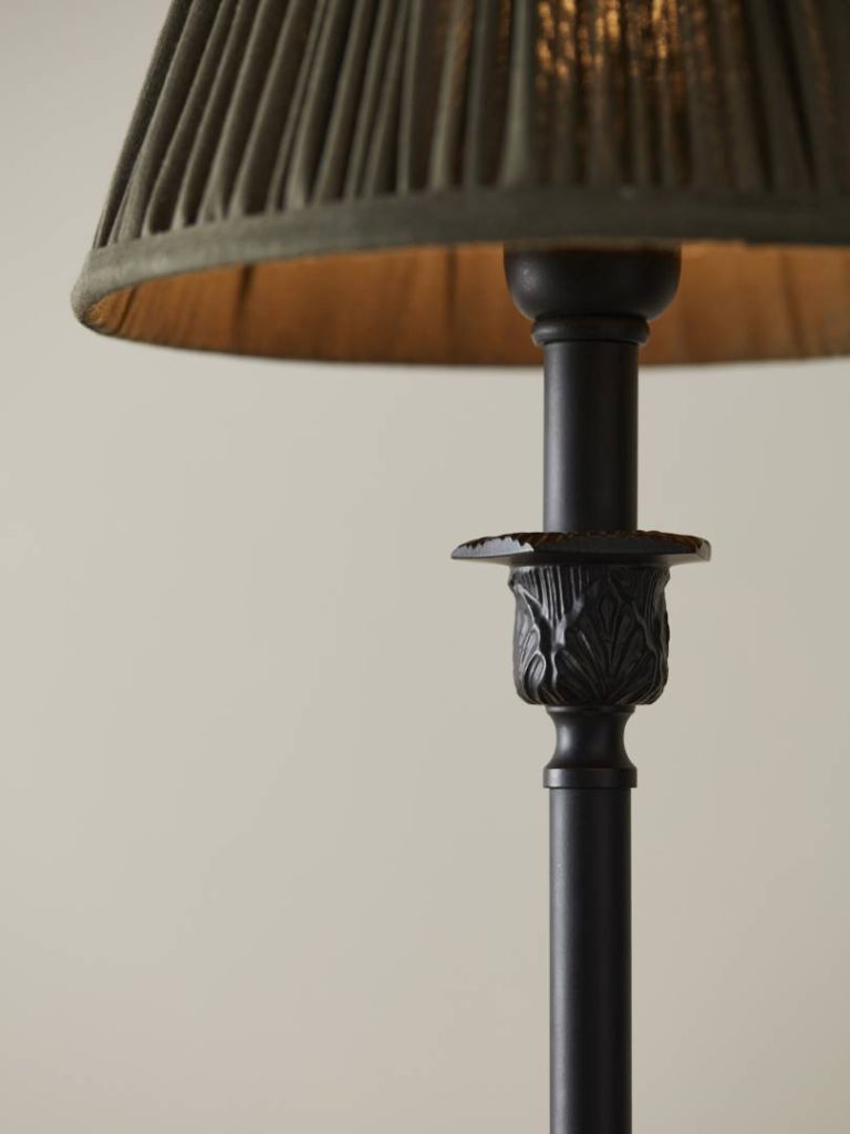 Lampunjalka mattamustaa metallia. Kauniit yksityiskohdat.
