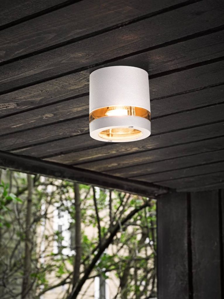 Ulkokattovalaisin valkoista metallia ja kirkasta muovia.
