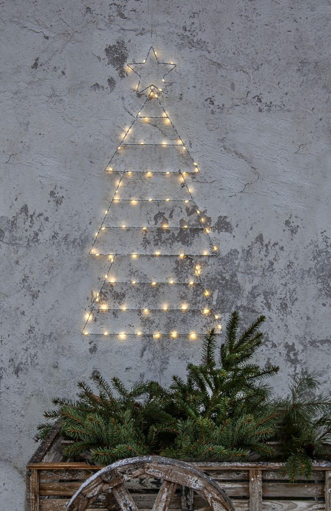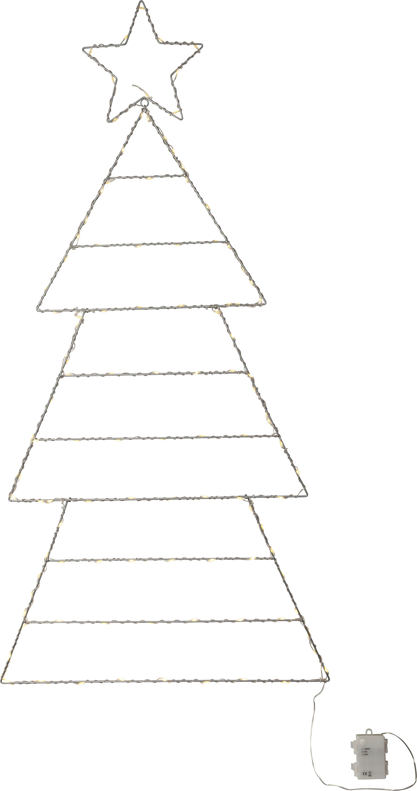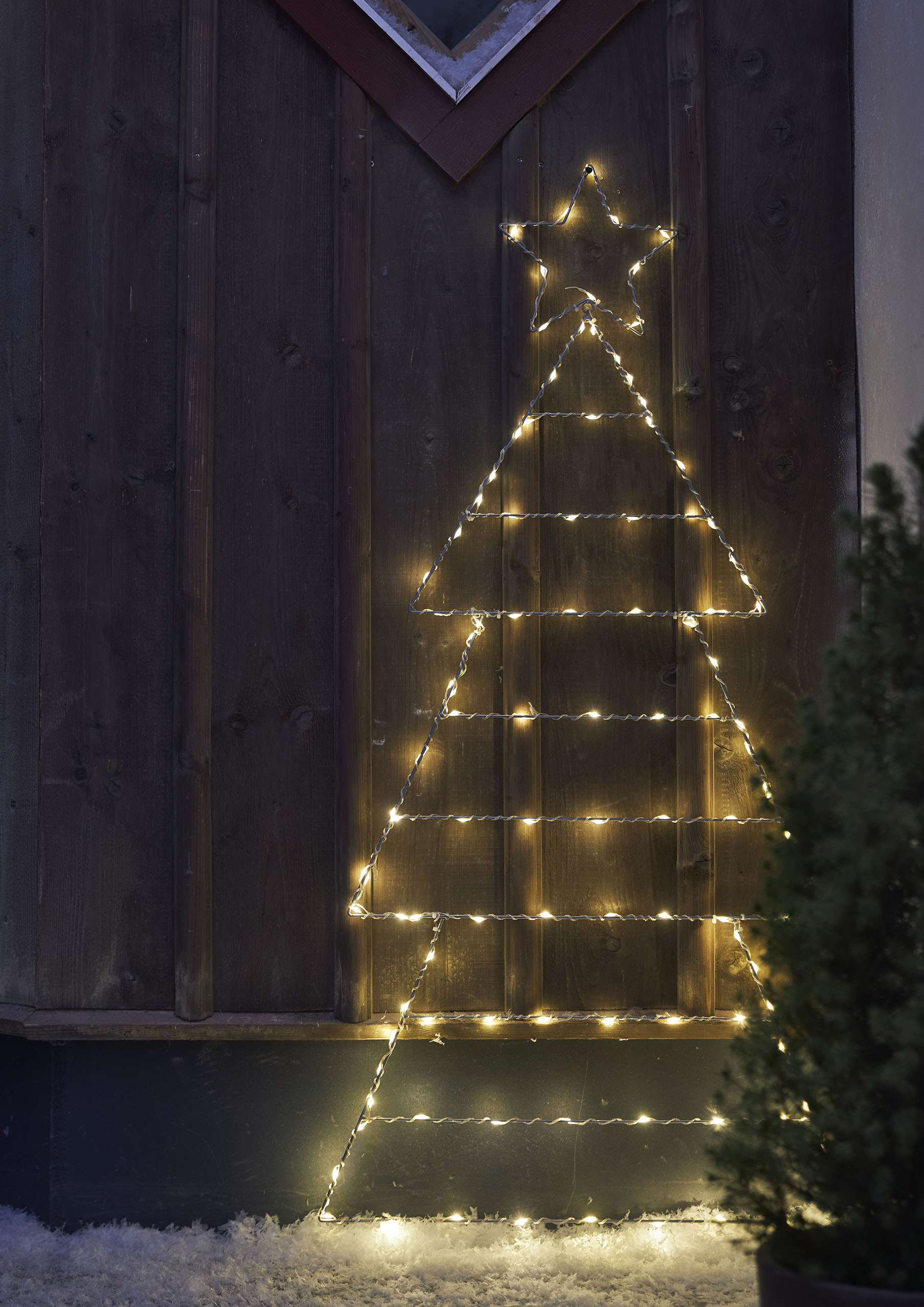 Tyylikäs hopeanvärinen kuusi-siluetti, joka sopii sekä ulko- että sisäkäyttöön. Kuusta valaisee 110 lämpimän valkoista pientä LED-valopistettä. Siluetti taittuu kokoon, mikä helpottaa sen säilyttämistä.