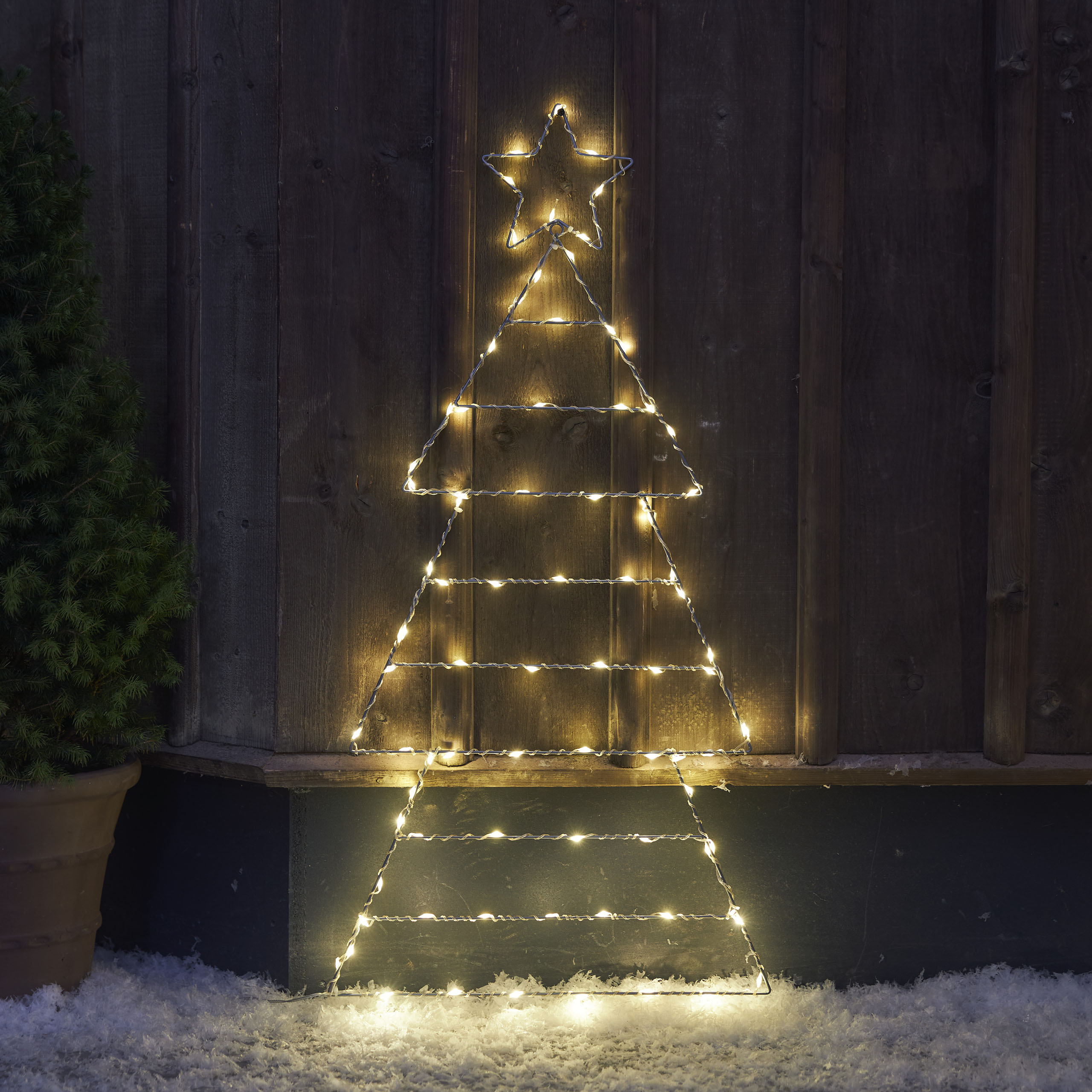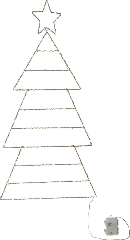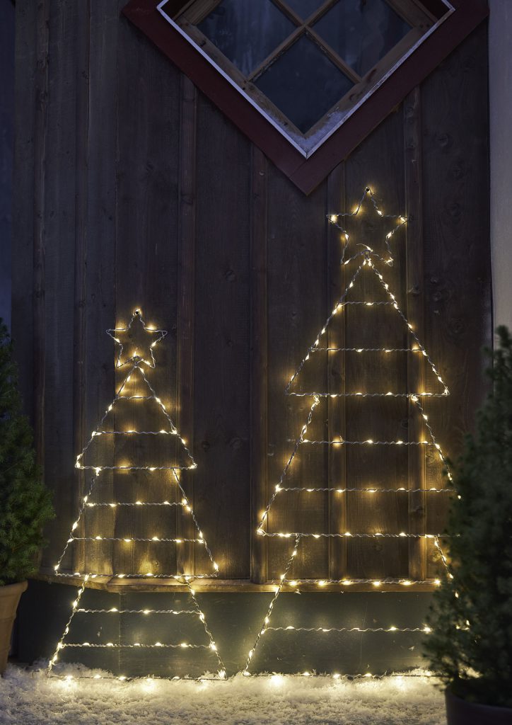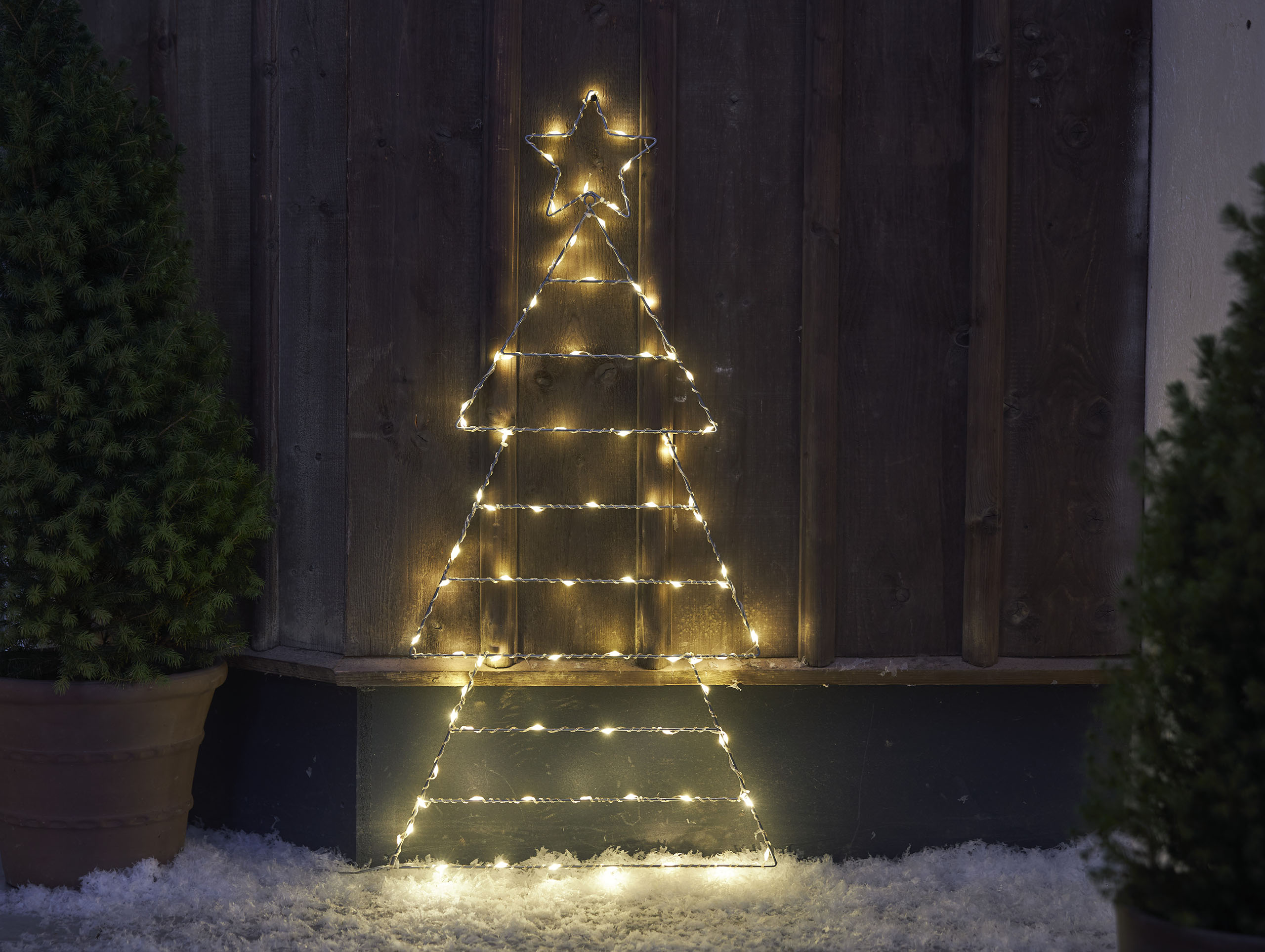 Tyylikäs hopeanvärinen kuusi-siluetti, joka sopii sekä ulko- että sisäkäyttöön. Kuusta valaisee 84 lämpimän valkoista pientä LED-valopistettä. Siluetti taittuu kokoon, mikä helpottaa sen säilyttämistä.