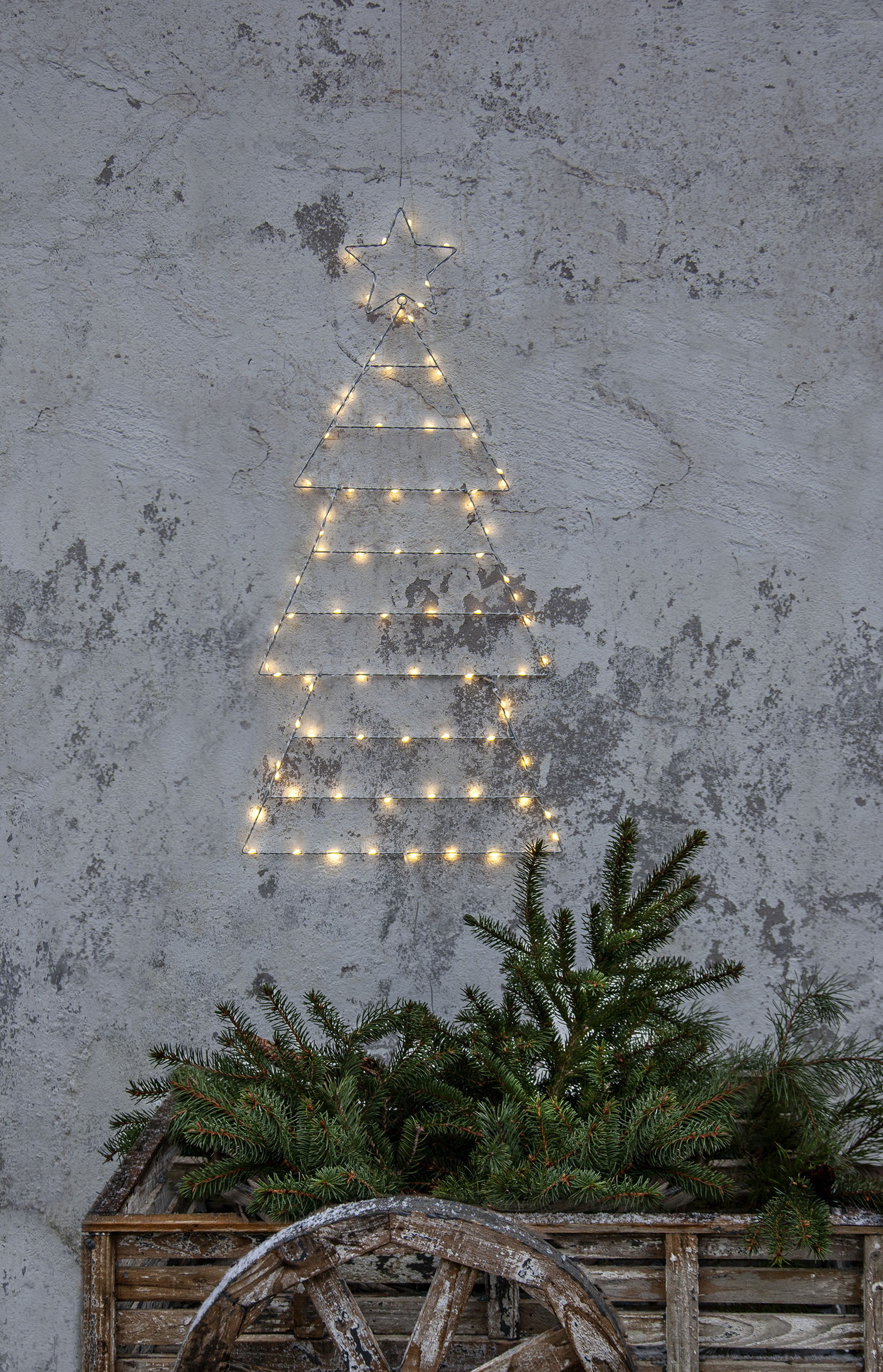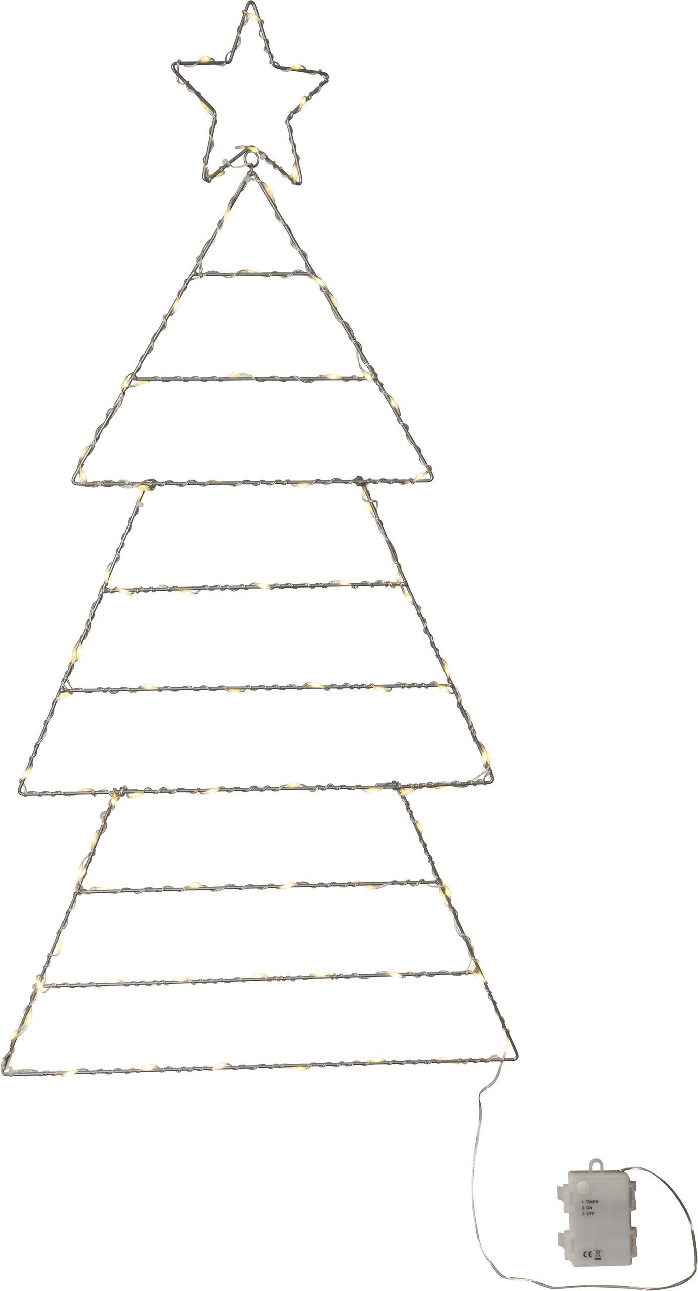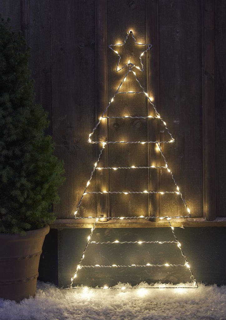 Tyylikäs hopeanvärinen kuusi-siluetti, joka sopii sekä ulko- että sisäkäyttöön. Kuusta valaisee 84 lämpimän valkoista pientä LED-valopistettä. Siluetti taittuu kokoon, mikä helpottaa sen säilyttämistä.