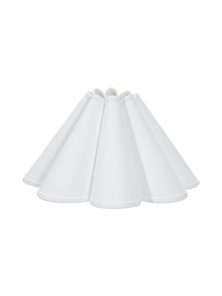 Freja-lampunvarjostimen muodot muistuttavat kukan terälehtiä. Varjostin on lehti lehdeltä käsin ommeltu valkoisesta puuvillakankaasta. Varjostimen sisäpuoli on valkoista laminaattia, joka saa valon heijastumaan kauniisti.