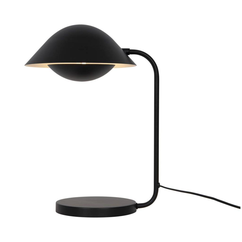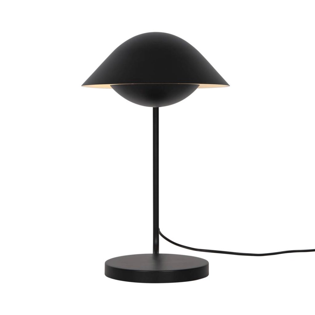 Metallista valmistettu Freya-pöytävalaisin edustaa skandinaavista modernia muotoilua. Alempi varjostin suojaa häikäisyltä ja luo epäsuoraa valoa.