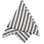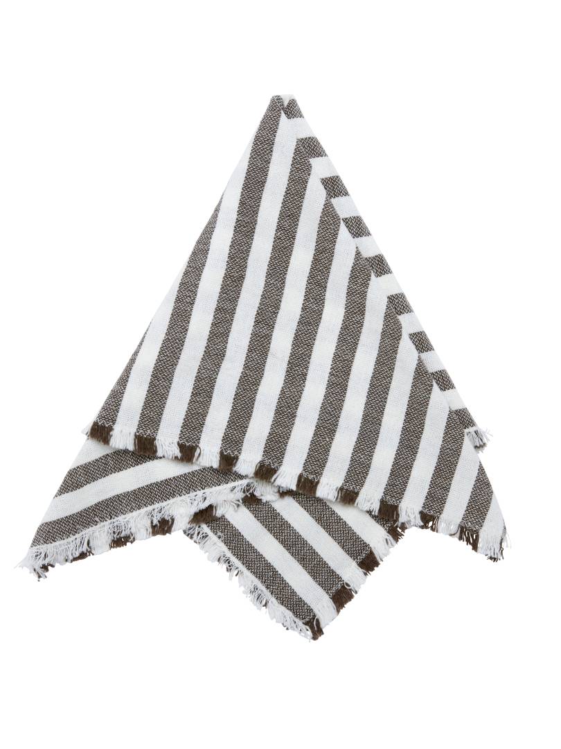 Servetti pehmeää, kevyesti pestyn tuntuista puuvillaa. Servetissä on lankavärjätty raidoitus, joten se on samanlainen molemmilta puolilta. Jokaisessa reunassa on hapsut.