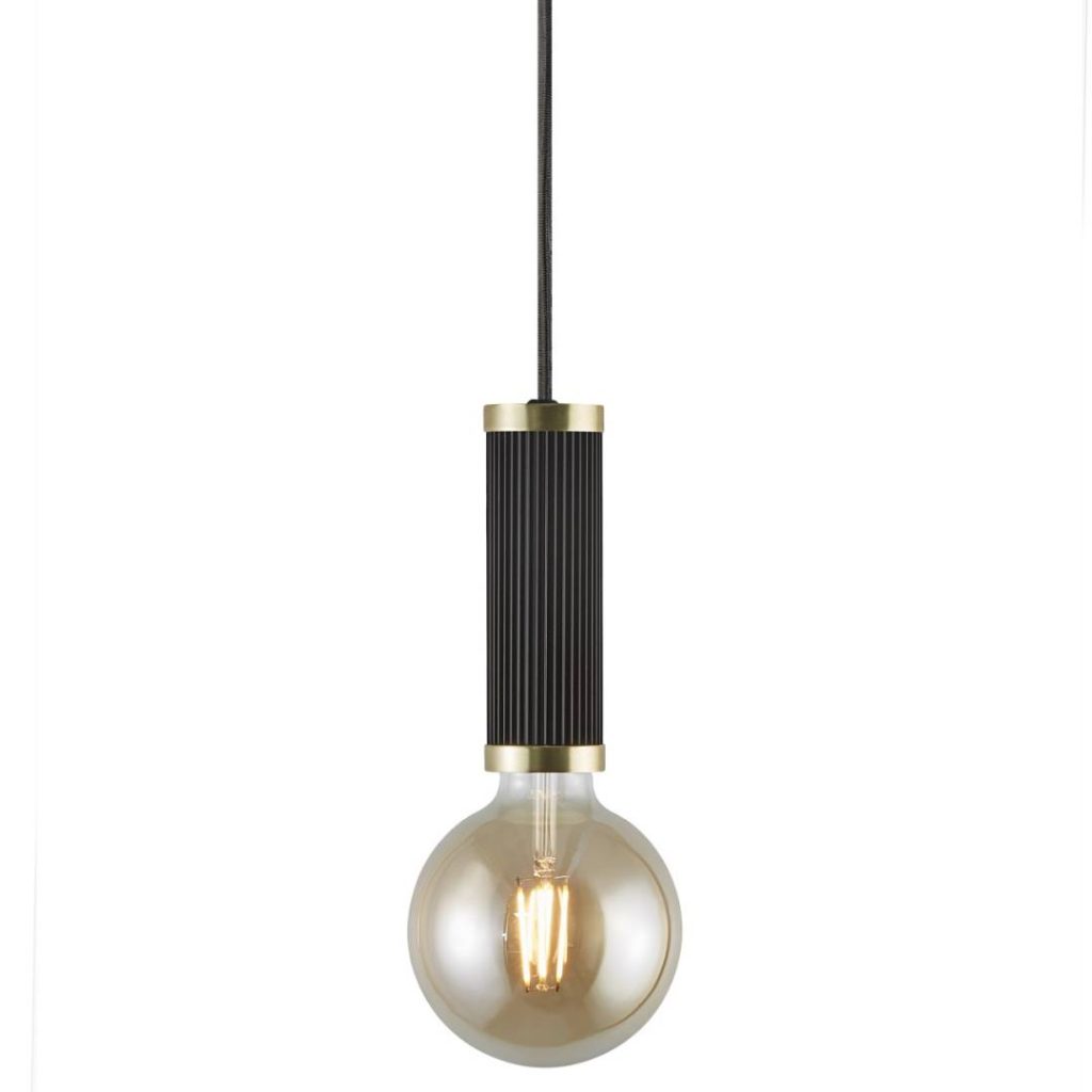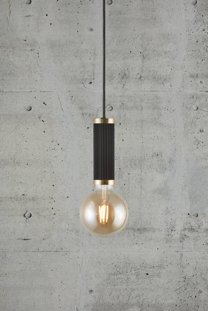Riippuvalaisin mustaa ja messingin väristä metallia.