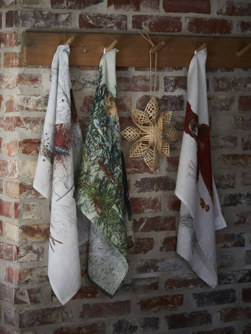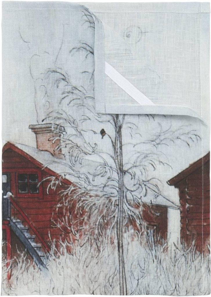 Keittiöpyyhe Carl Larssonin maalauksesta painetulla kuvalla, 100% pellavaa. Pellava imee hyvin kosteutta, ei nukkaa, ja on erinomainen materiaali keittiöpyyhkeisiin.