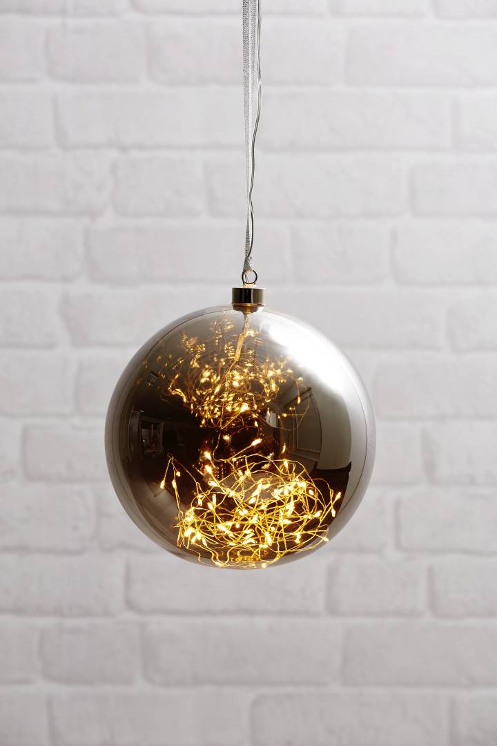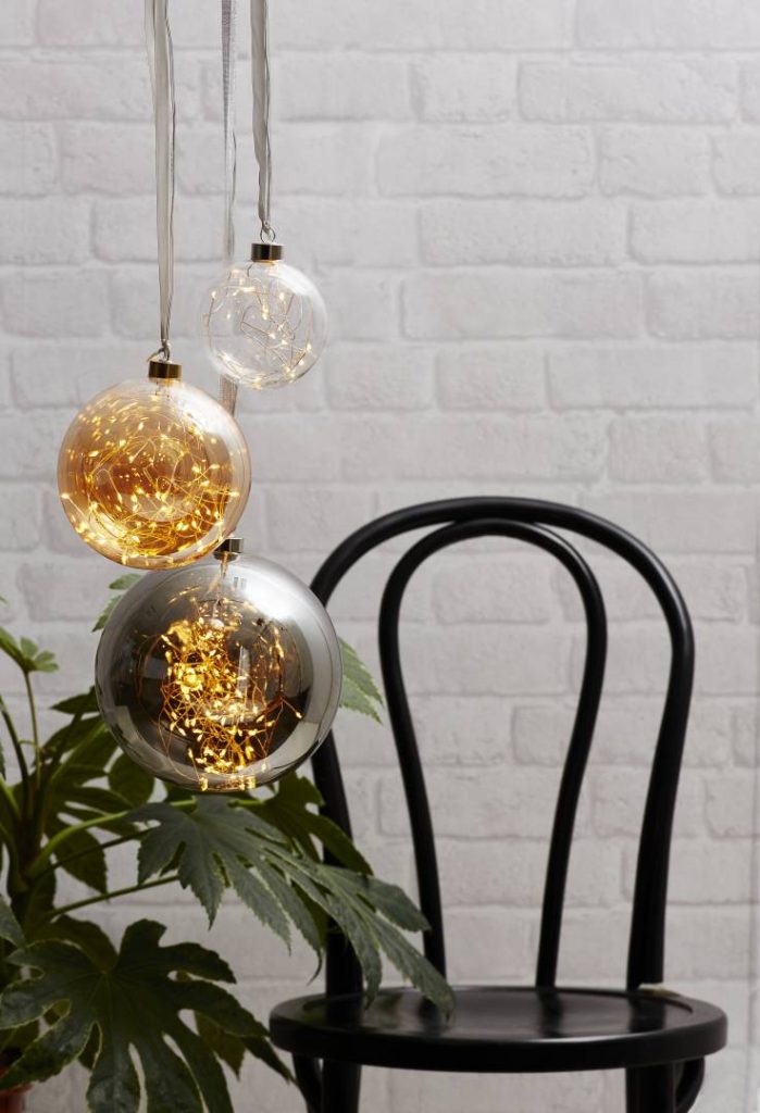Savunharmaa koristelasipallo, jonka sisällä on 80-osainen Dew Drop -valosarja lämpimän valkoisilla valoilla. Luo kauniin tunnelmallisen valon.