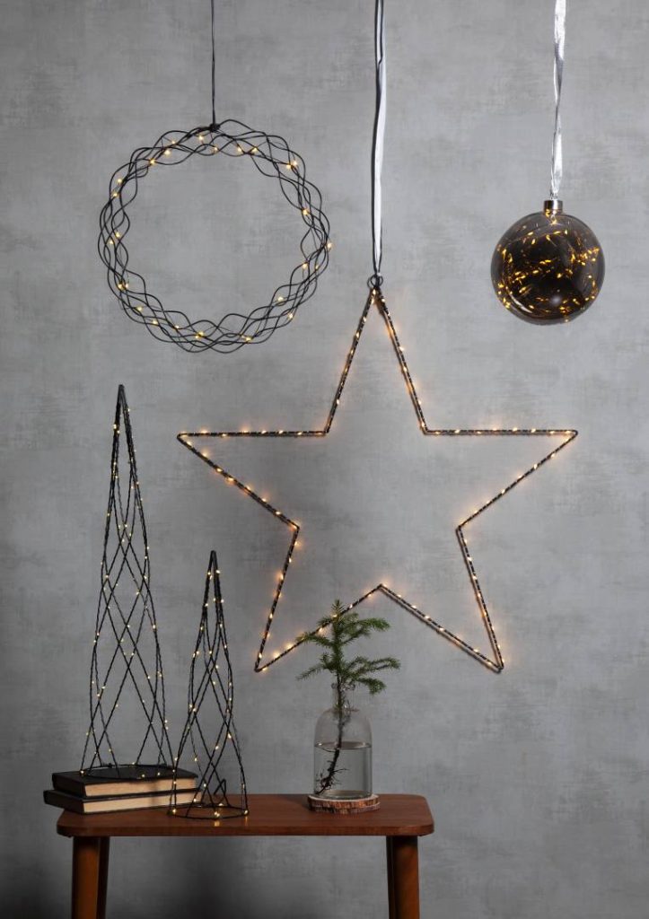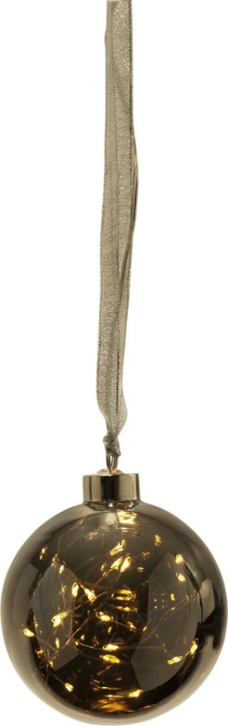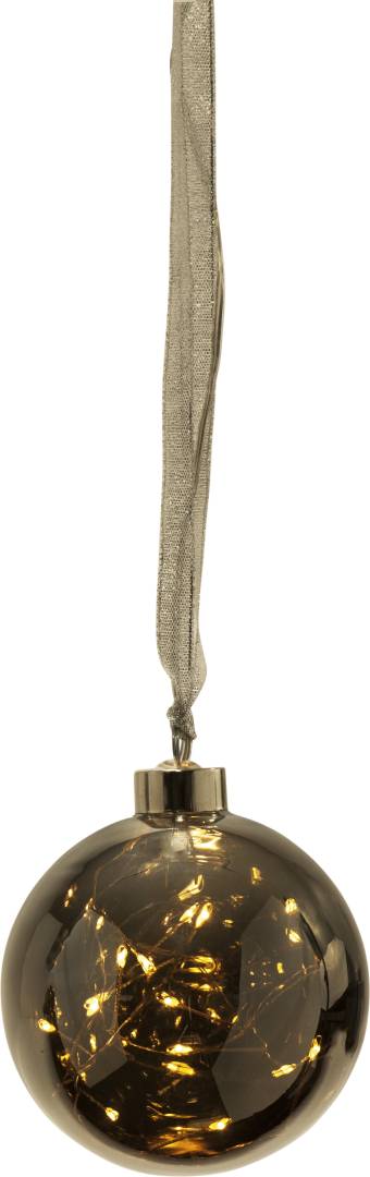 Paristokäyttöinen savunharmaa koristelasipallo, jossa on sisällä 15-osainen Dew Drop -valosarja lämpimän valkoisilla valoilla. Luo kauniin tunnelmallisen valon.