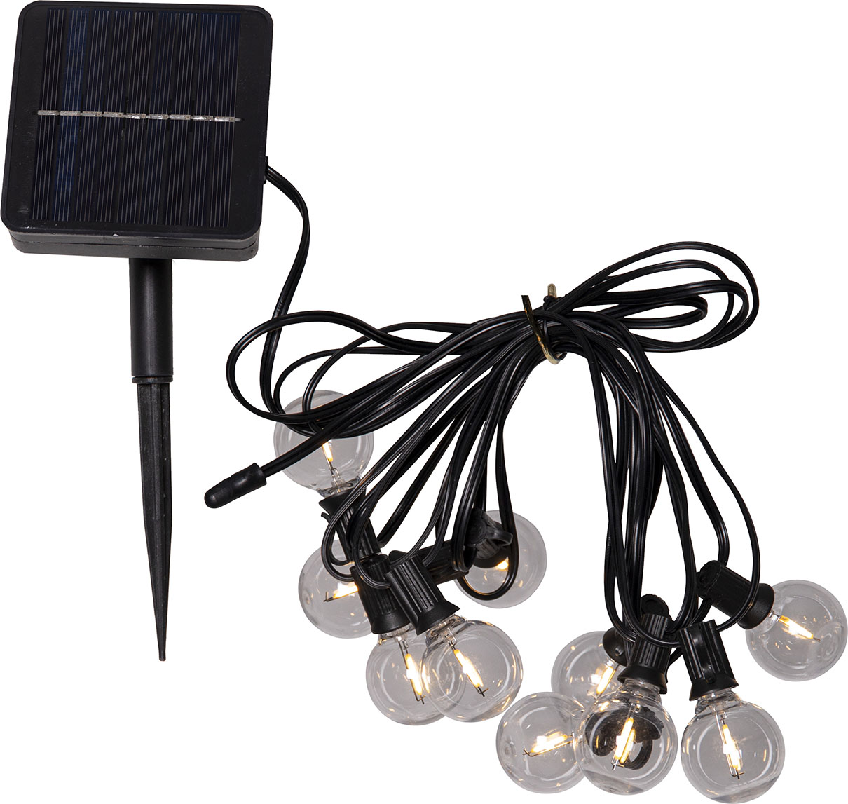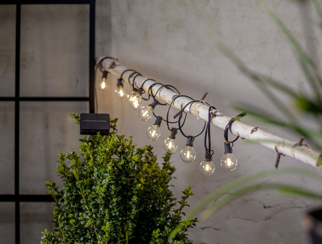Aurinkokennolla toimiva valosarja, jossa on 10 pientä kirkasta polykarbonaattikupua lämpimän valkoisilla LED-valoilla. Sopii koristeluun puutarhassa, terassilla tai parvekkeella.