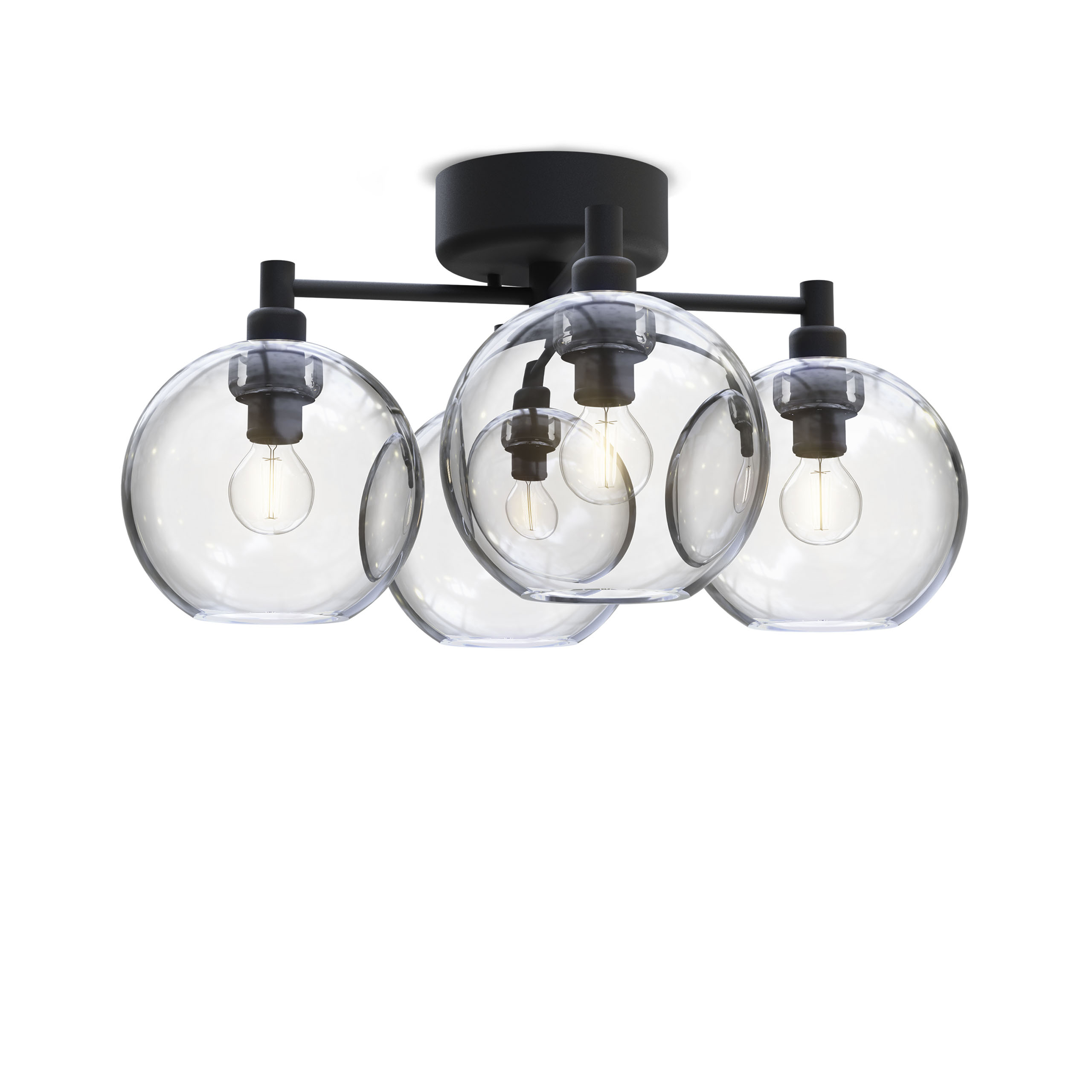 E14, max 4 x 25W. Ei sisällä valonlähteitä. Gloria-plafondiin sopivat parhaiten LED-filamenttilamput.
