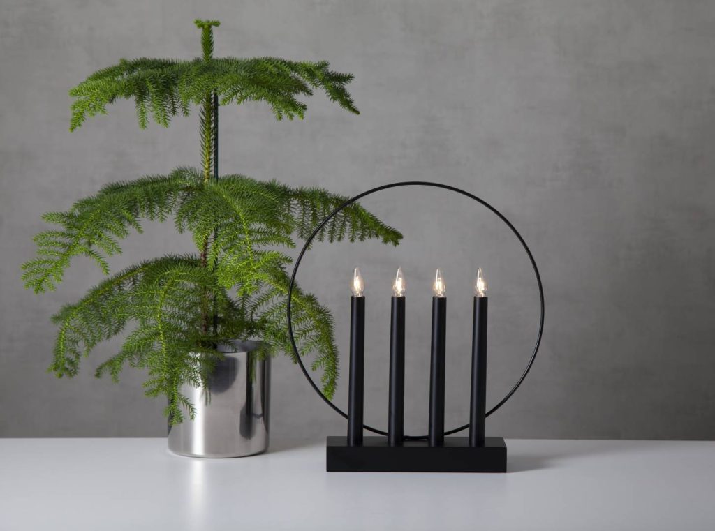Kaunis puukynttelikkö mustalla metallirenkaalla. Sisäkäyttöön.