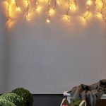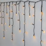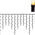 Ulkokäyttöön sopiva 5,9 metriä pitkä jääpuikkovalosarja, jossa on mustassa kaapelissa 240 lämpimän valkoista, kultaan vivahtavaa LED-valoa.