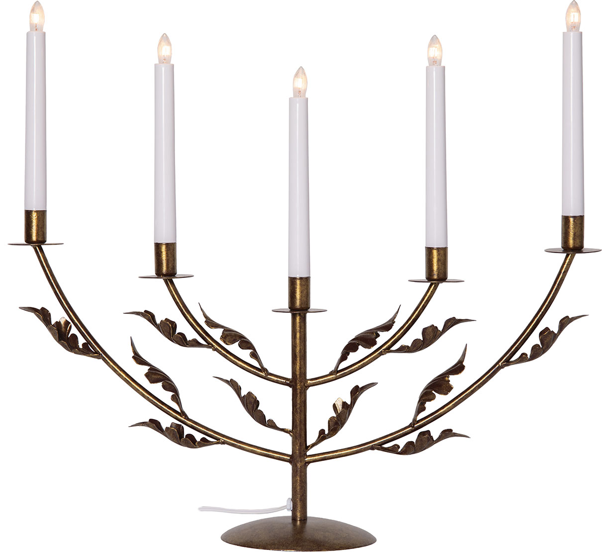 Kynttelikössä on 180 cm pitkä johto katkaisijalla ja viisi vaihdettavaa lamppua.