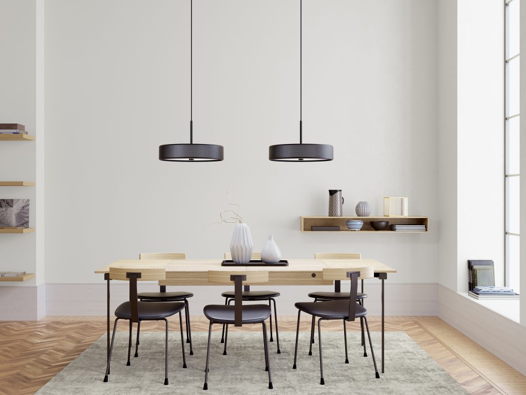 Moderni riippuvalaisin mattamustaa metallia. Sopii esimerkiksi keittiösaarekkeen tai ruokapöydän yläpuolelle.