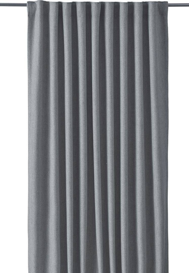 Pitkät verhot hieman karkeampaa, villaa muistuttavaa kangasta, jossa on vinojuovakuvio. Verhoissa on monitoiminauha yläreunassa, päärmätyt sivureunat ja yliluotteluommel alareunassa. Pakkaus sisältää 2 verhoa.