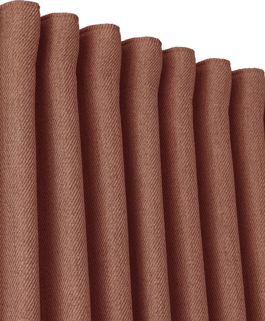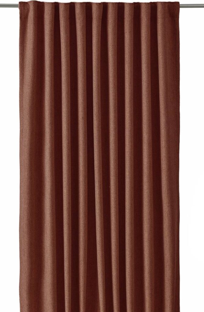 Pitkät verhot hieman karkeampaa, villaa muistuttavaa kangasta, jossa on vinojuovakuvio. Verhoissa on monitoiminauha yläreunassa, päärmätyt sivureunat ja yliluotteluommel alareunassa. Pakkaus sisältää 2 verhoa.