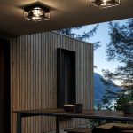 Linjakas ja moderni kattovalaisin, joka sopii sekä perinteiseen että nykyaikaisempaan arkkitehtuuriin. Valaisimen runko on kestävää jauhemaalattua metallia ja sen savunharmaa häikäisysuojus tekee valaistuksesta miellyttävän.
