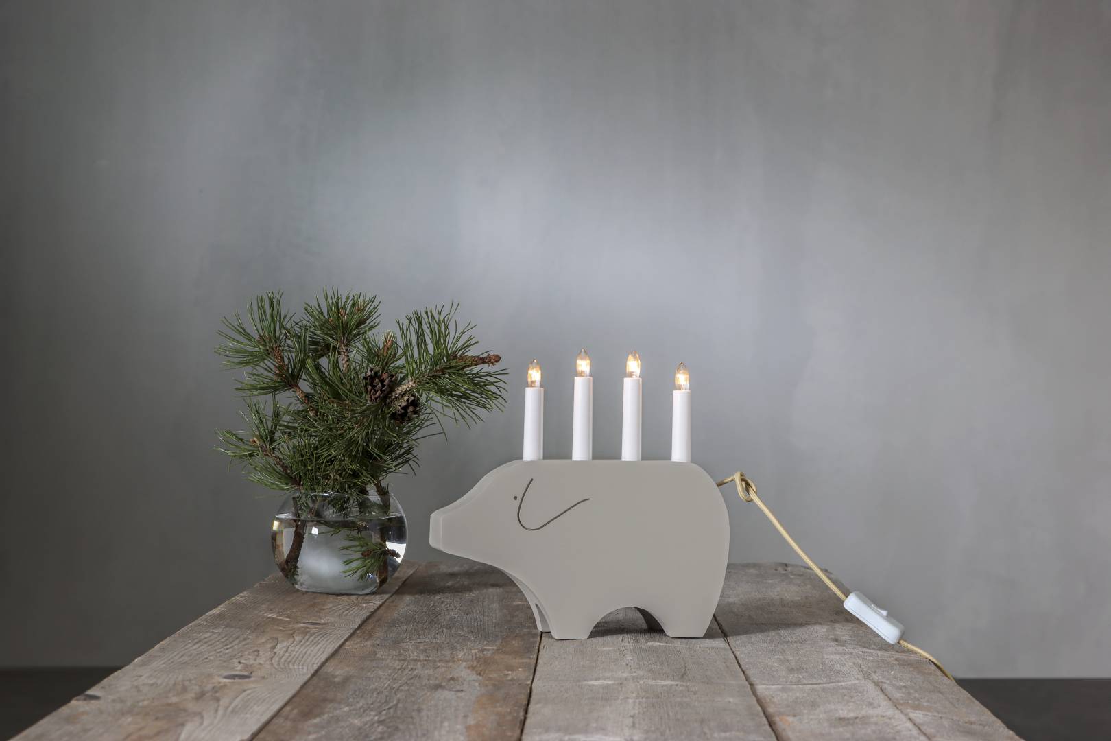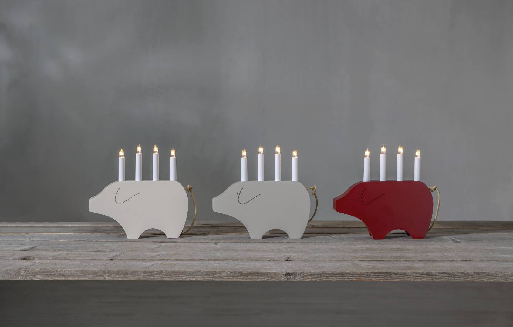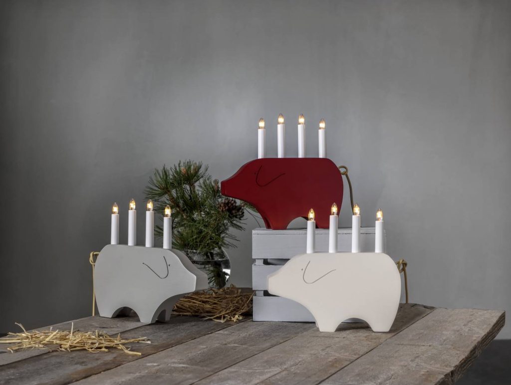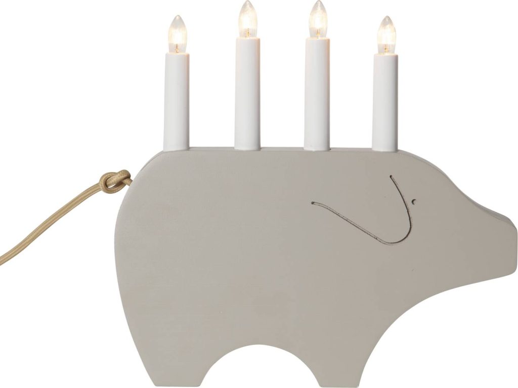 Hauska possun mallinen puinen kynttelikkö.