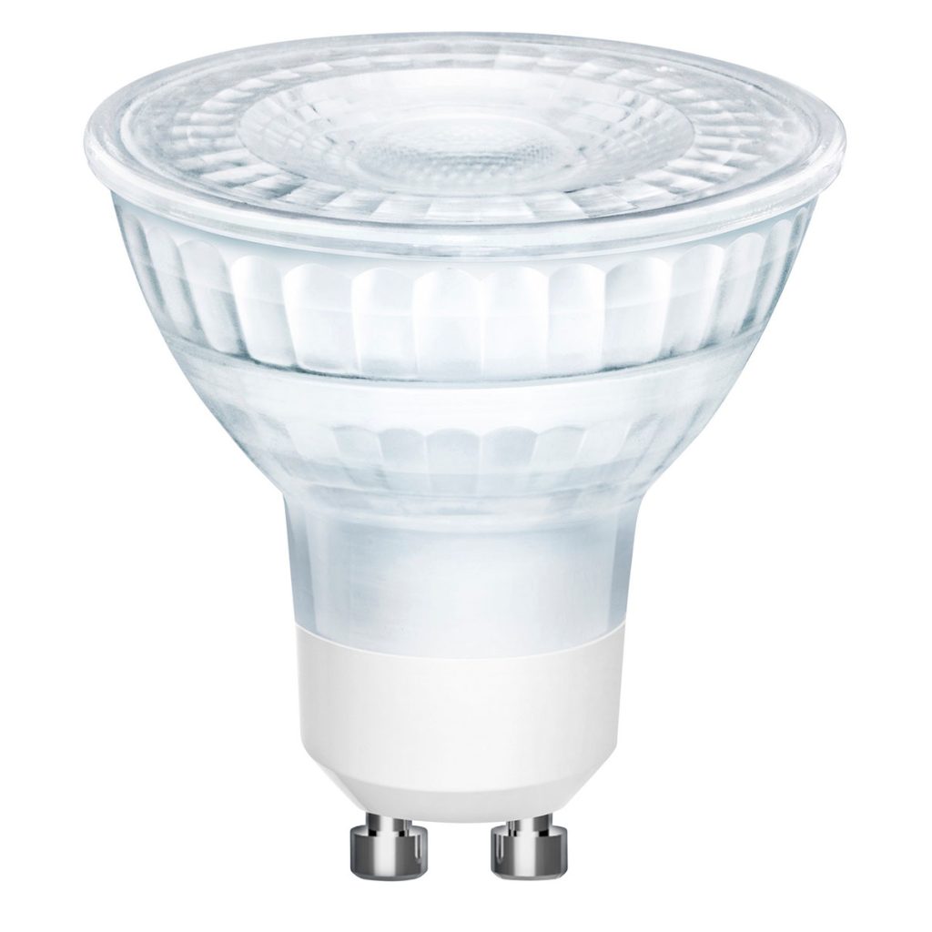 LED-lamppu GU10-kannalla ja lämpimän valkoisella valolla.