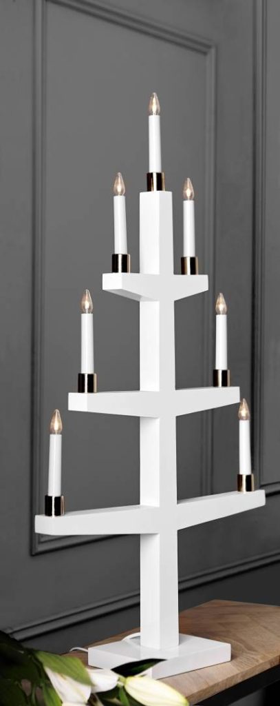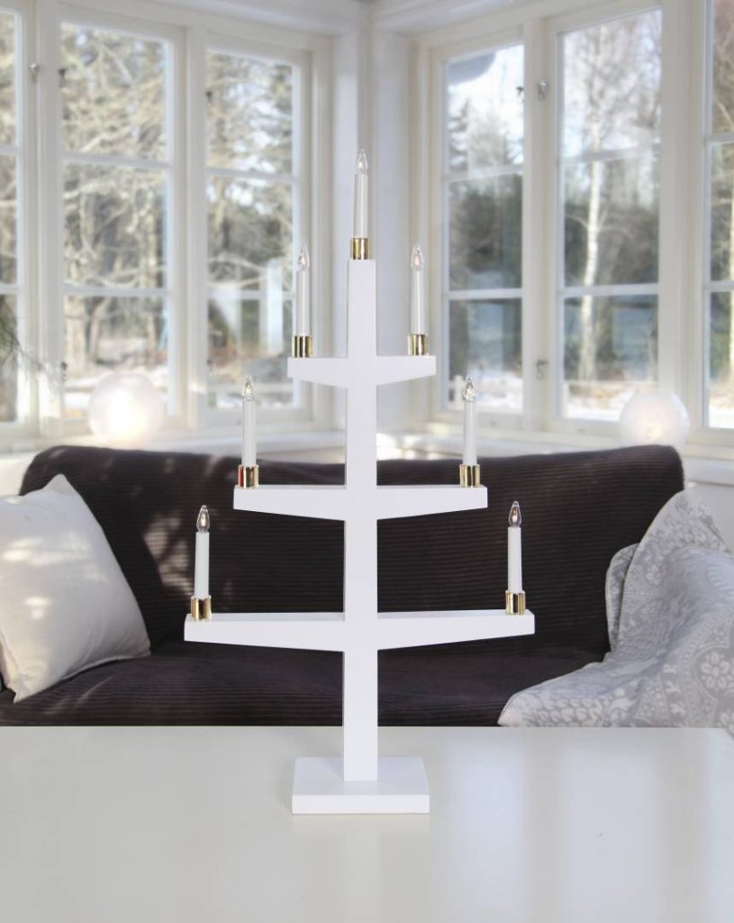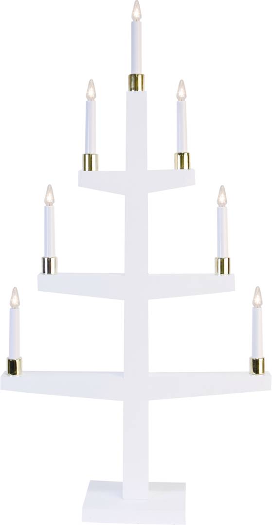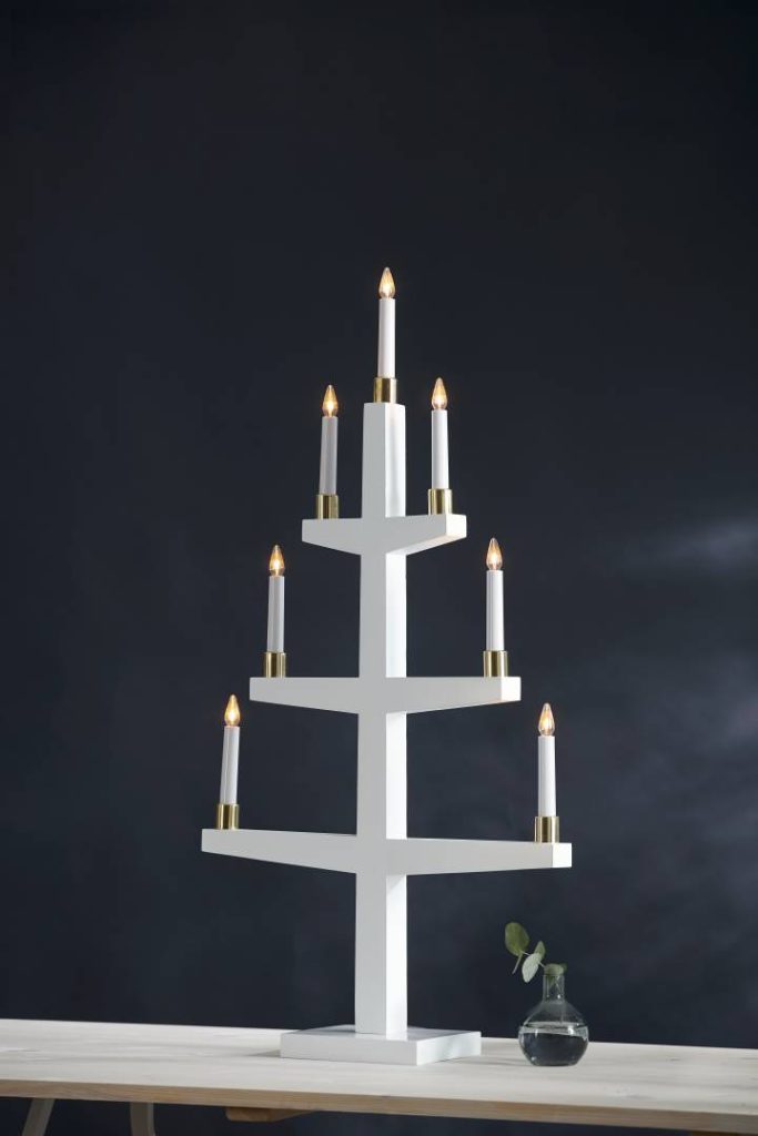 7-haarainen puukynttelikkö sisäkäyttöön. Valkoinen/messinki.