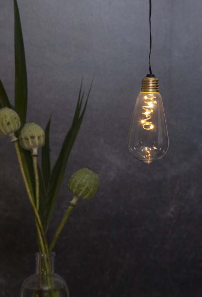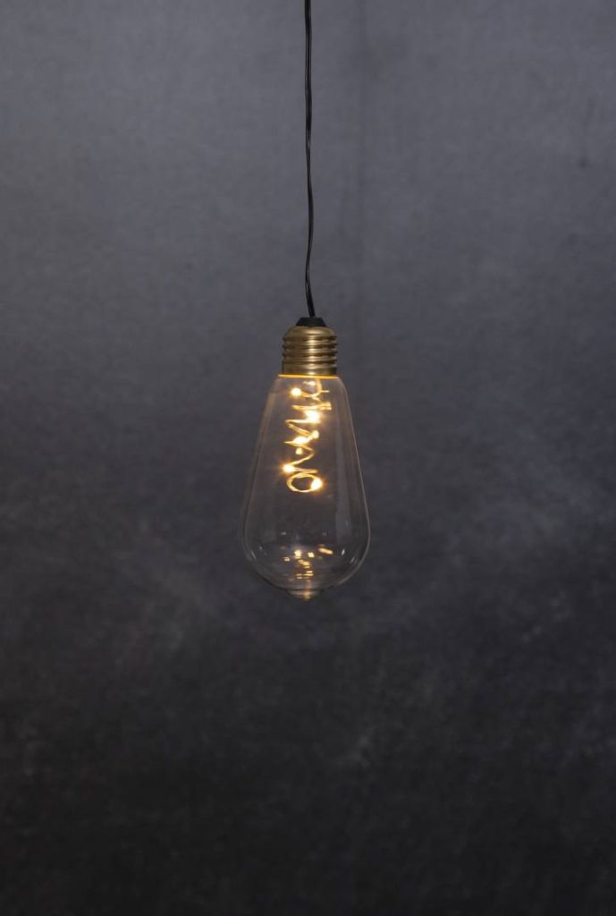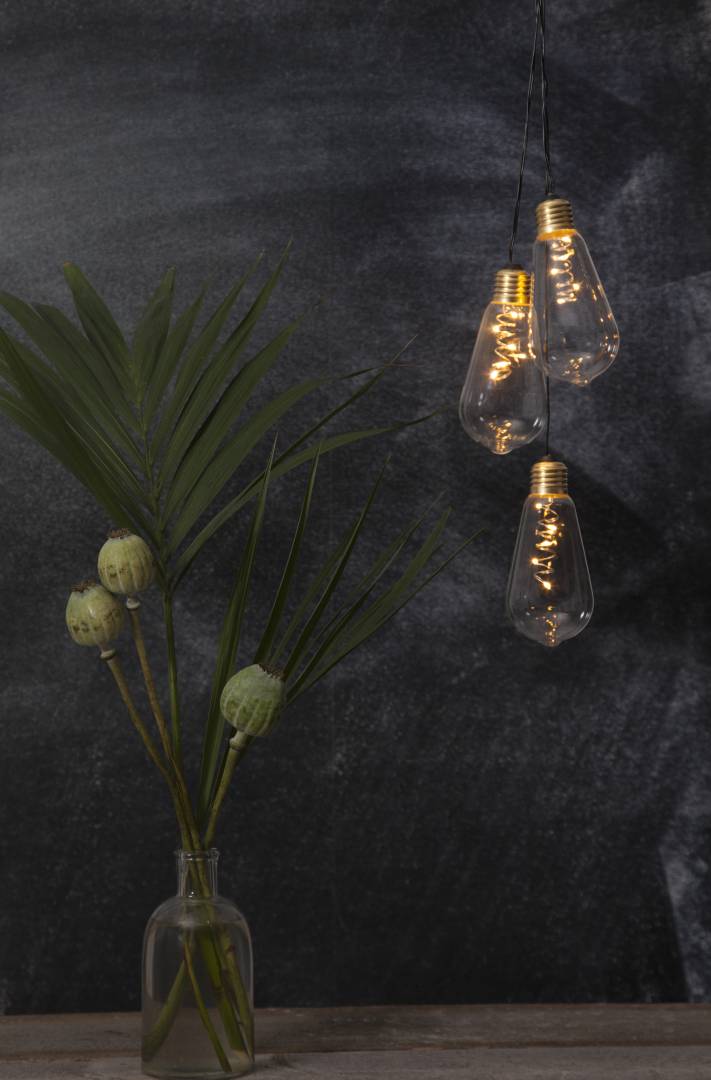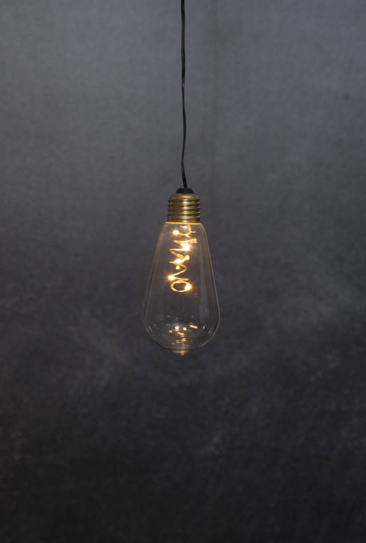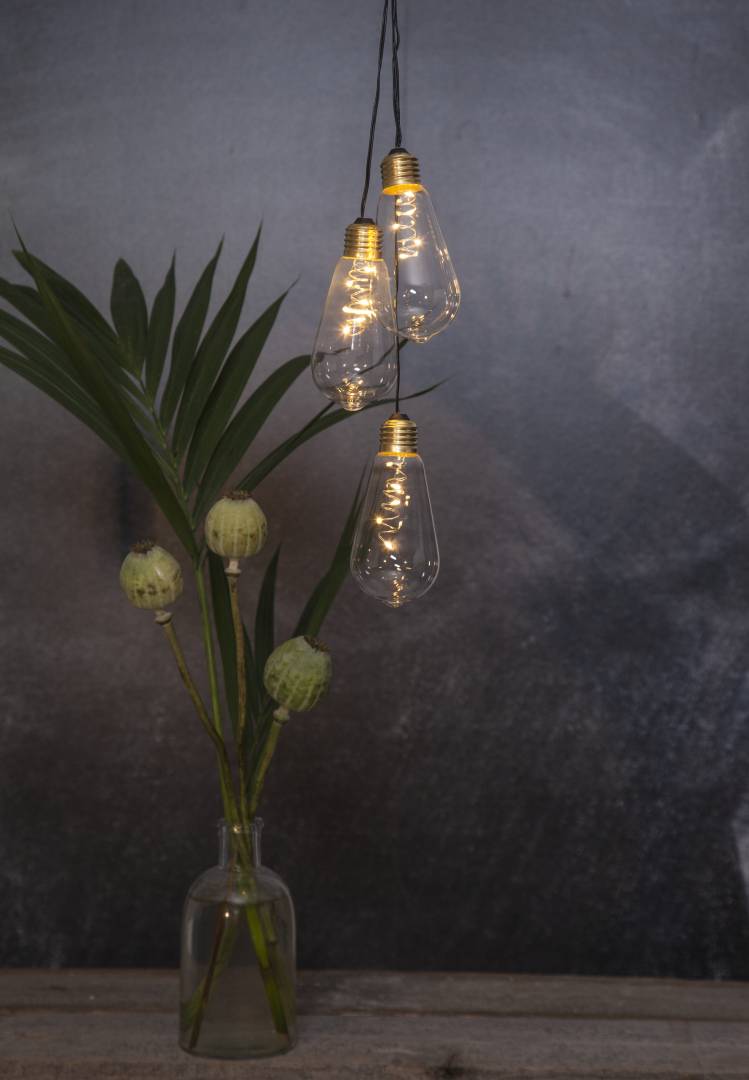 Paristokäyttöinen hehkulampun muotoinen koristevalaisin, jossa on kirkkaan lampun sisällä 5-osainen valosarja lämpimän valkoisilla valoilla. Sopii sisäkäyttöön koristeeksi niin arkeen kuin juhlaan.
