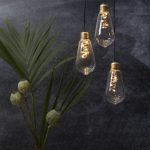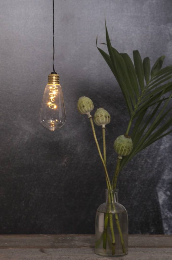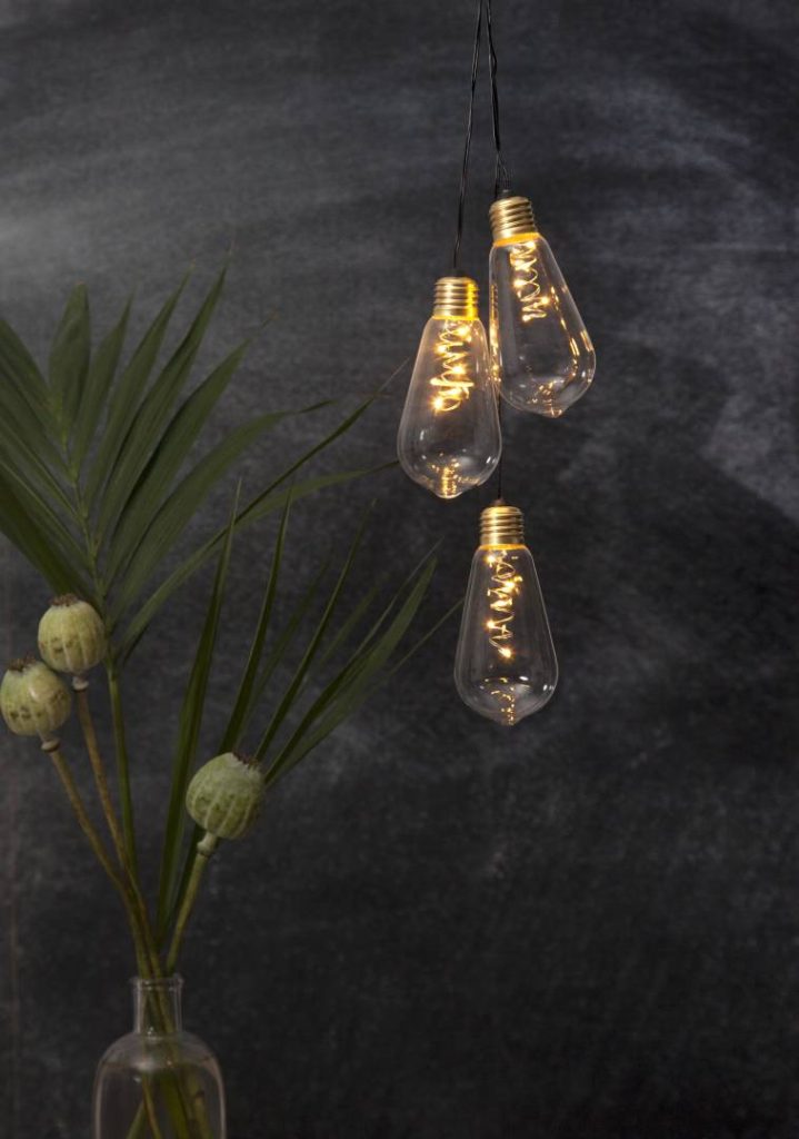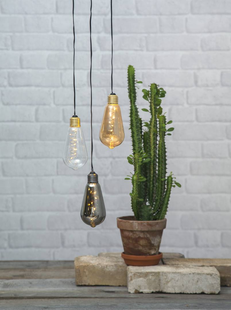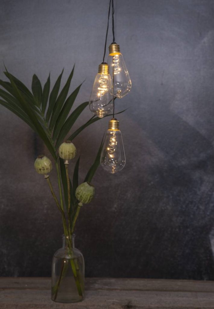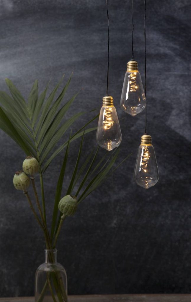Paristokäyttöinen hehkulampun muotoinen koristevalaisin, jossa on kirkkaan lampun sisällä 5-osainen valosarja lämpimän valkoisilla valoilla. Sopii sisäkäyttöön koristeeksi niin arkeen kuin juhlaan.