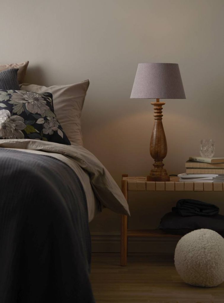 Lampunvarjostin yksiväristä polyesterikangasta.
