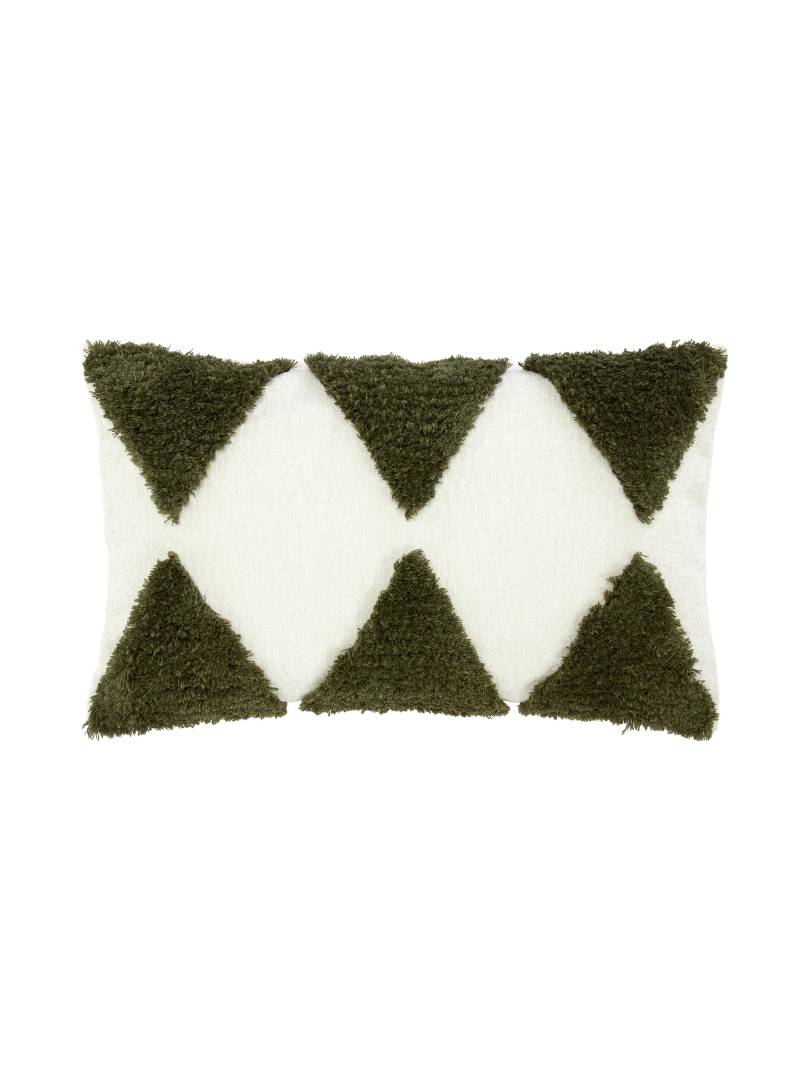 Tyynynpäällinen tuftatuilla kuvioilla. Tyynynpäällisessä on vetoketju alareunassa.