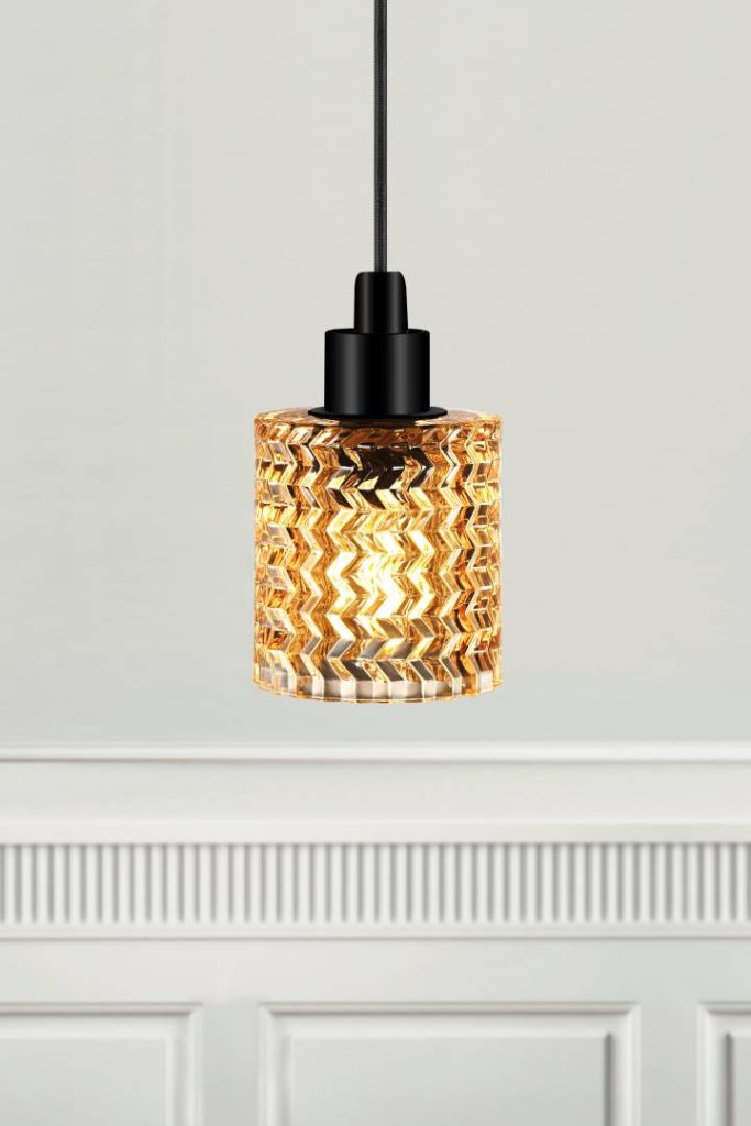 Tyylikäs valaisin kauniilla meripihkan värisellä lasikuvulla.