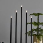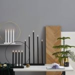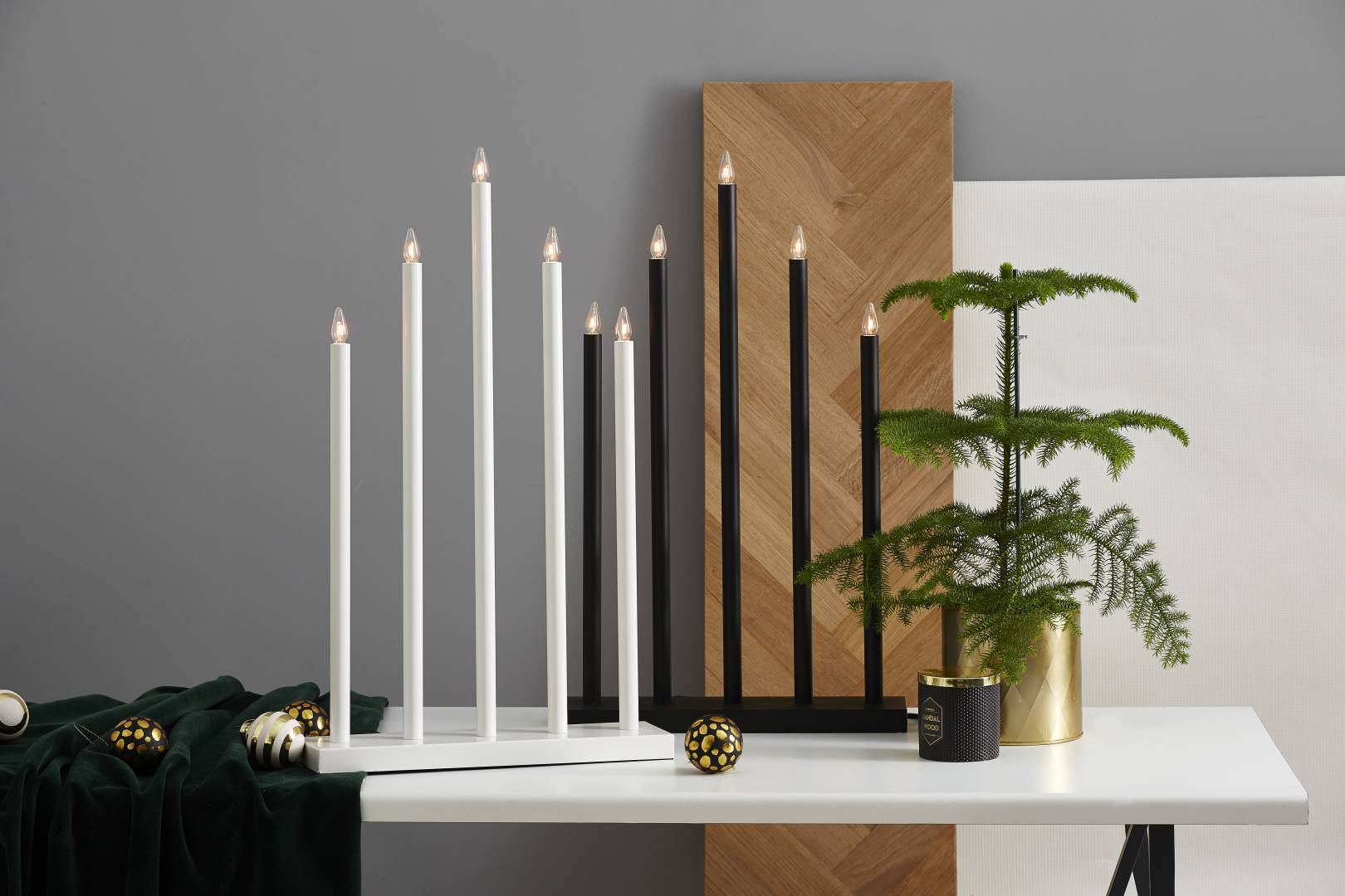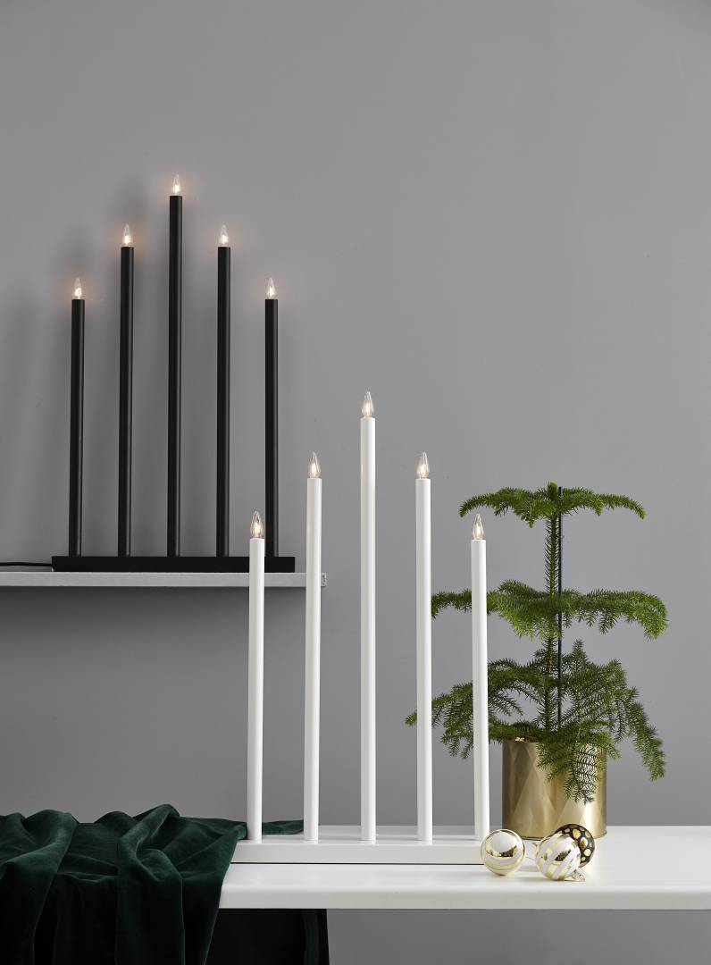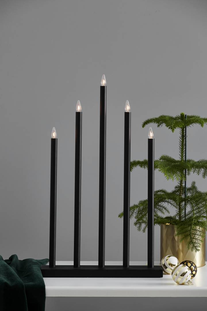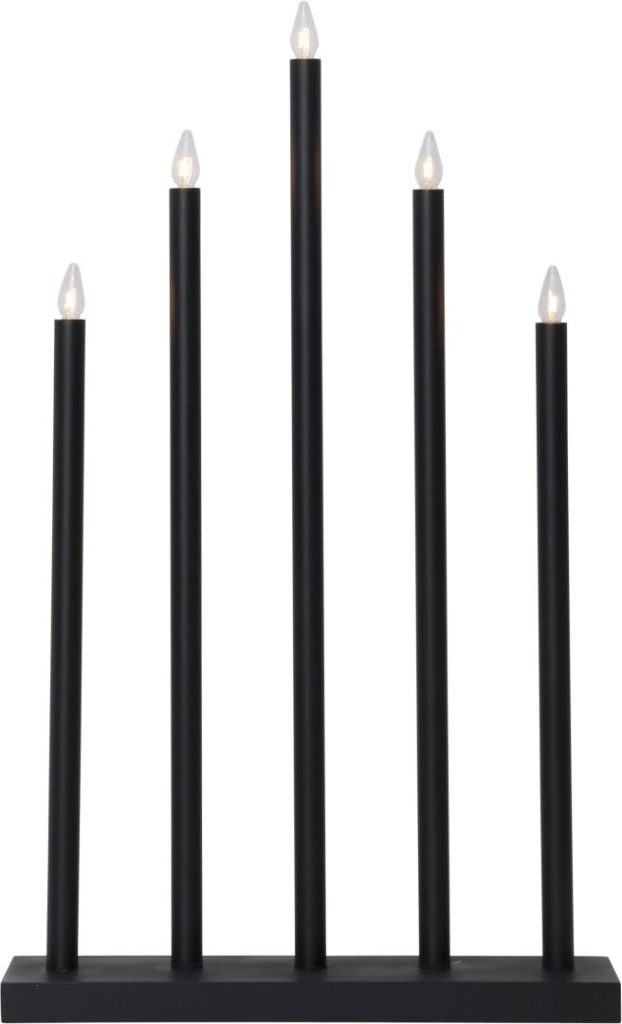 Musta 5-haarainen kynttelikkö, jonka jalusta on puuta ja kynttilät metallia. Tyylikäs ja pelkistetty kynttelikkö, joka sopi mainiosti skandinaaviseen sisustustyyliin.